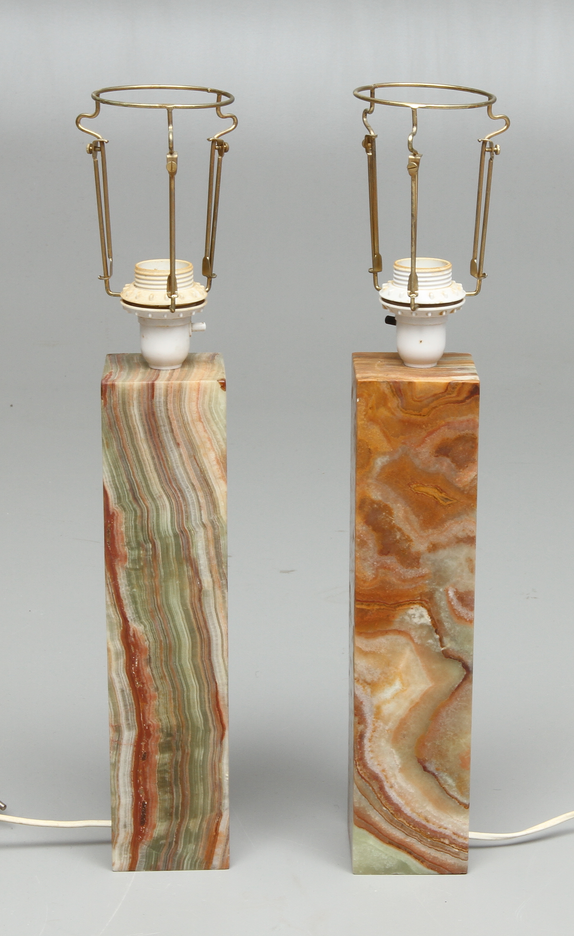 15309. TISCHLAMPEN 1 Paar, Onyx, 1900er.