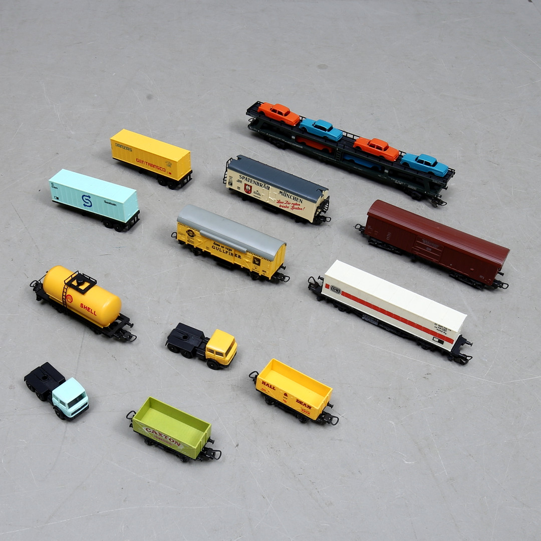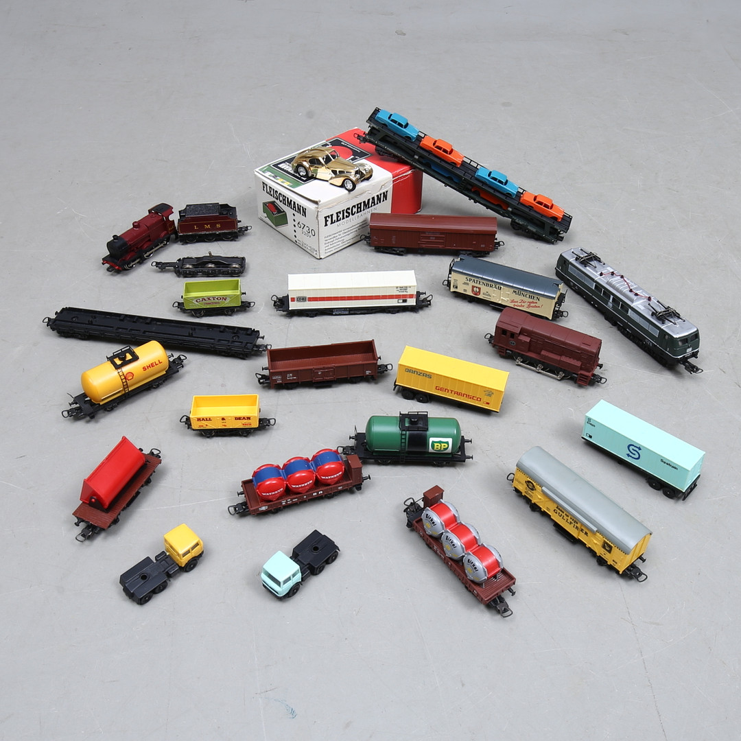 1533749. LIMA 3 Lokomotiven, 14 Waggons und 2 Wagen, FLEISCHMANN Trafo.