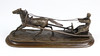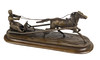 Bronze -Figur, Darstellung Pferdeschlitten mit Pferd auf Sockel,russischer Beschriftung und Plakette, Länge 22 cm, Breite 7,5 cm, Höhe 9 cm.