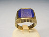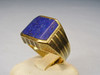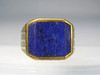 Der Ringkopf ist besetzt mit einer geeckten Lapislazuli-Platte, an den Ring-Schultern sind polierte Goldstege aufgelegt, die bis zur Ringschiene hinabreichen.