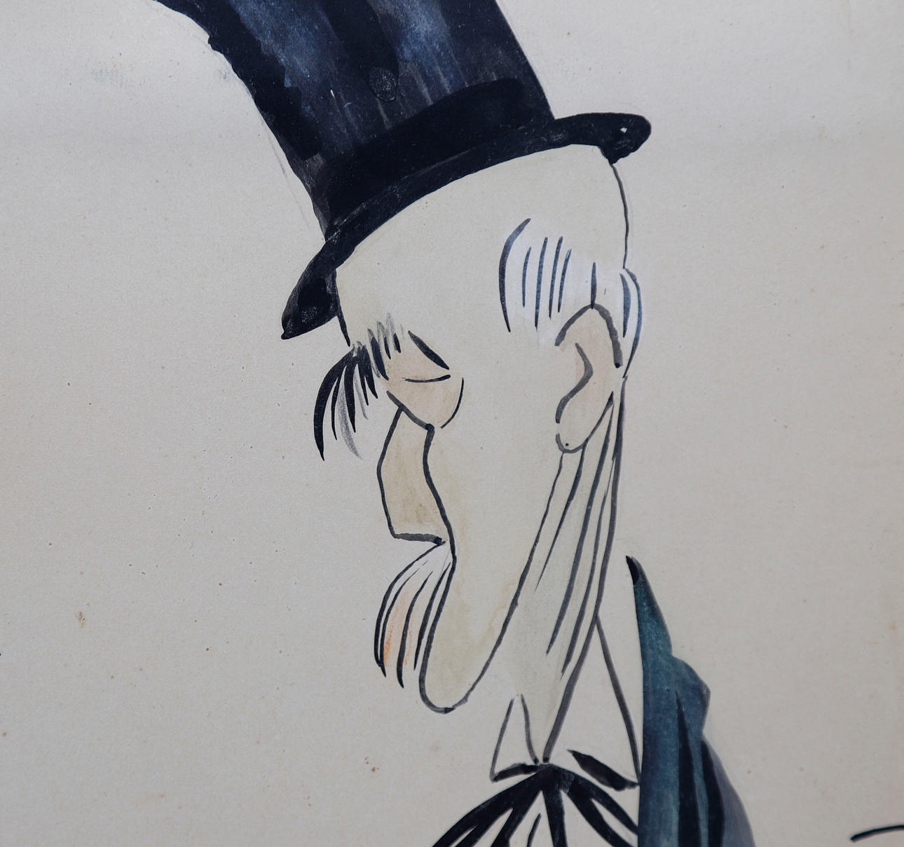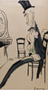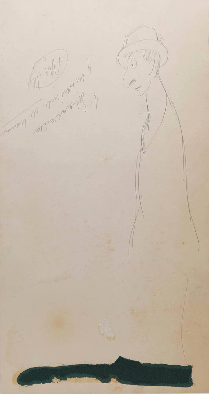 Tuschezeichnung, Tusche und Aquarell auf signiertem Papier. Auf der Rückseite eine Karikatur und eine Inschrift in Bleistift 50x27 cm.