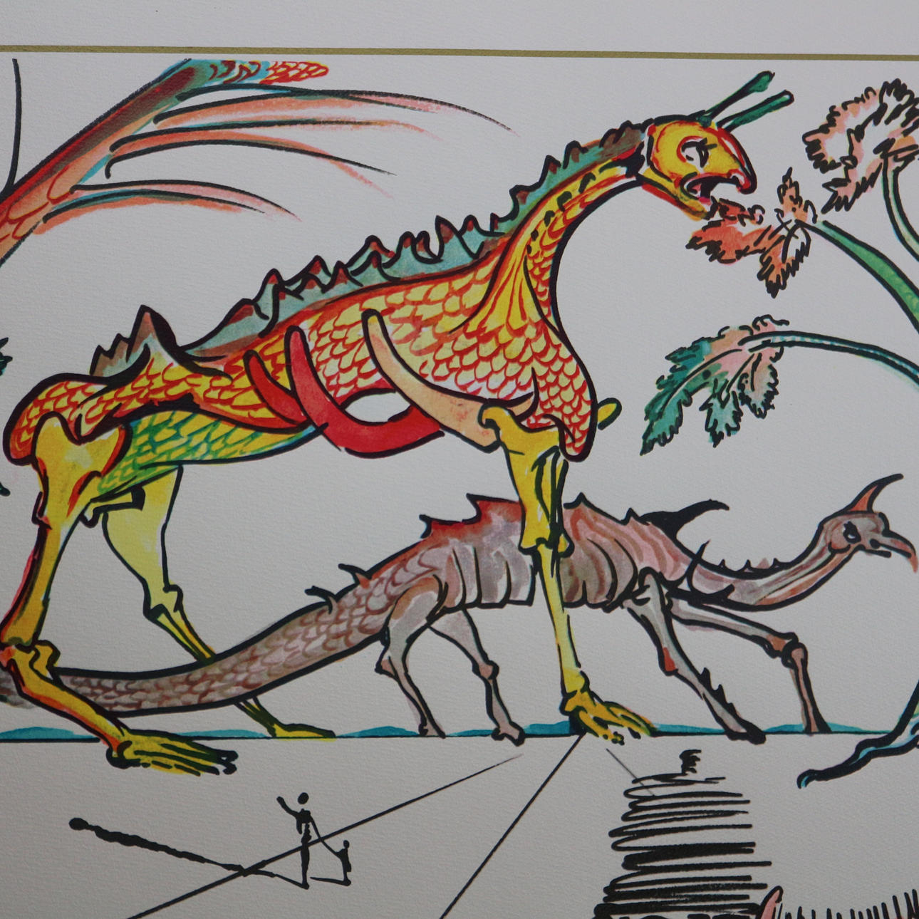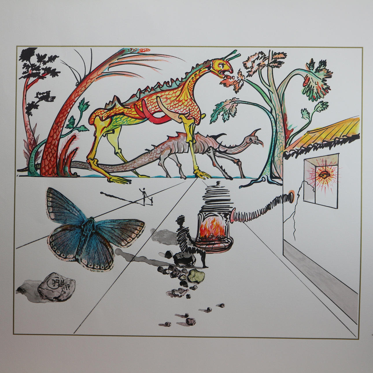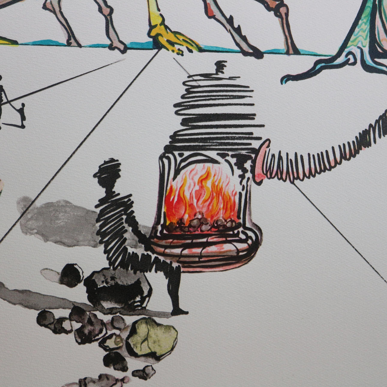 "Kohle Morgen" Lithographie von Salvador Dali, neu gerahmt, 1977, Blattmaße: 52 x 62 cm, Rahmenmaße: 92 x 100 cm, Gedruckt auf Hahnemühle Bütten, limitierte Auflage von 2000 Stück, Erschienen für den Gesamtverband "Deutscher Steinkohlebergbau" - "Kohle - heute / Kohle - morgen -".