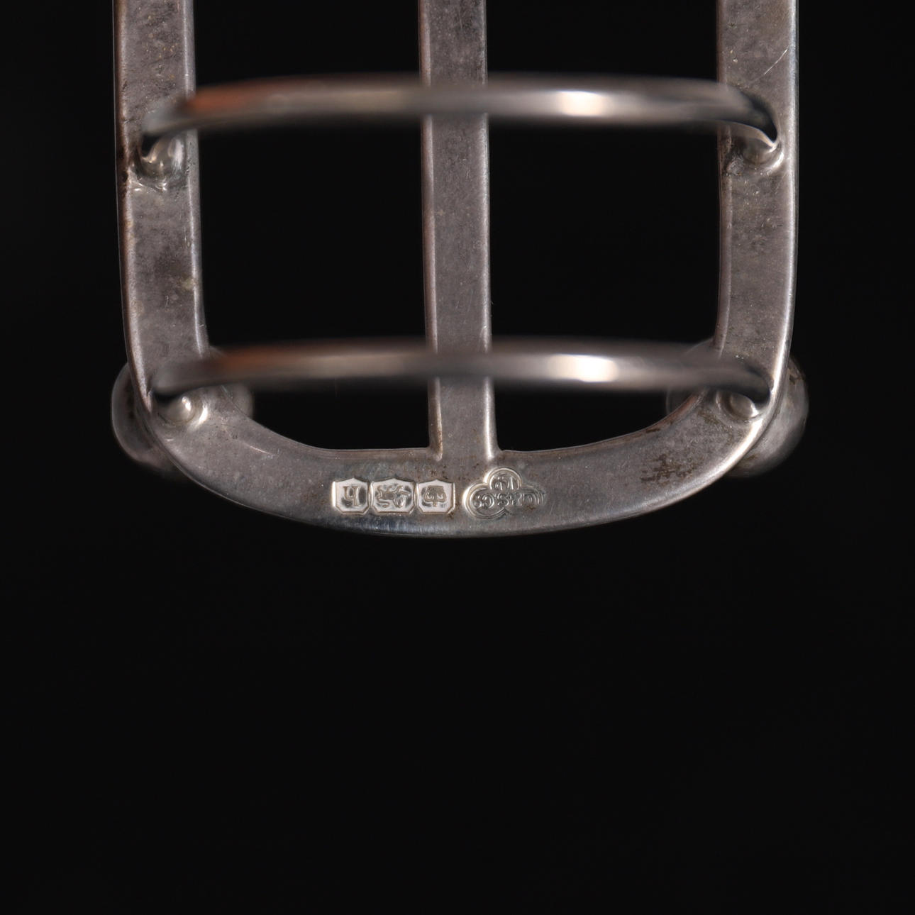 der Untersetzer mit Showmarks von Mills & Hersey, gepunzt London 1979, 13cm Durchmesser, ein viergeteilter Toastständer auf vier Kugelfüßen, von Goldsmiths & Silversmiths, gepunzt Sheffield 1925, 9cm hoch, Boden 9,5cm x 5cm, Toastständer 82 Gramm, (2).