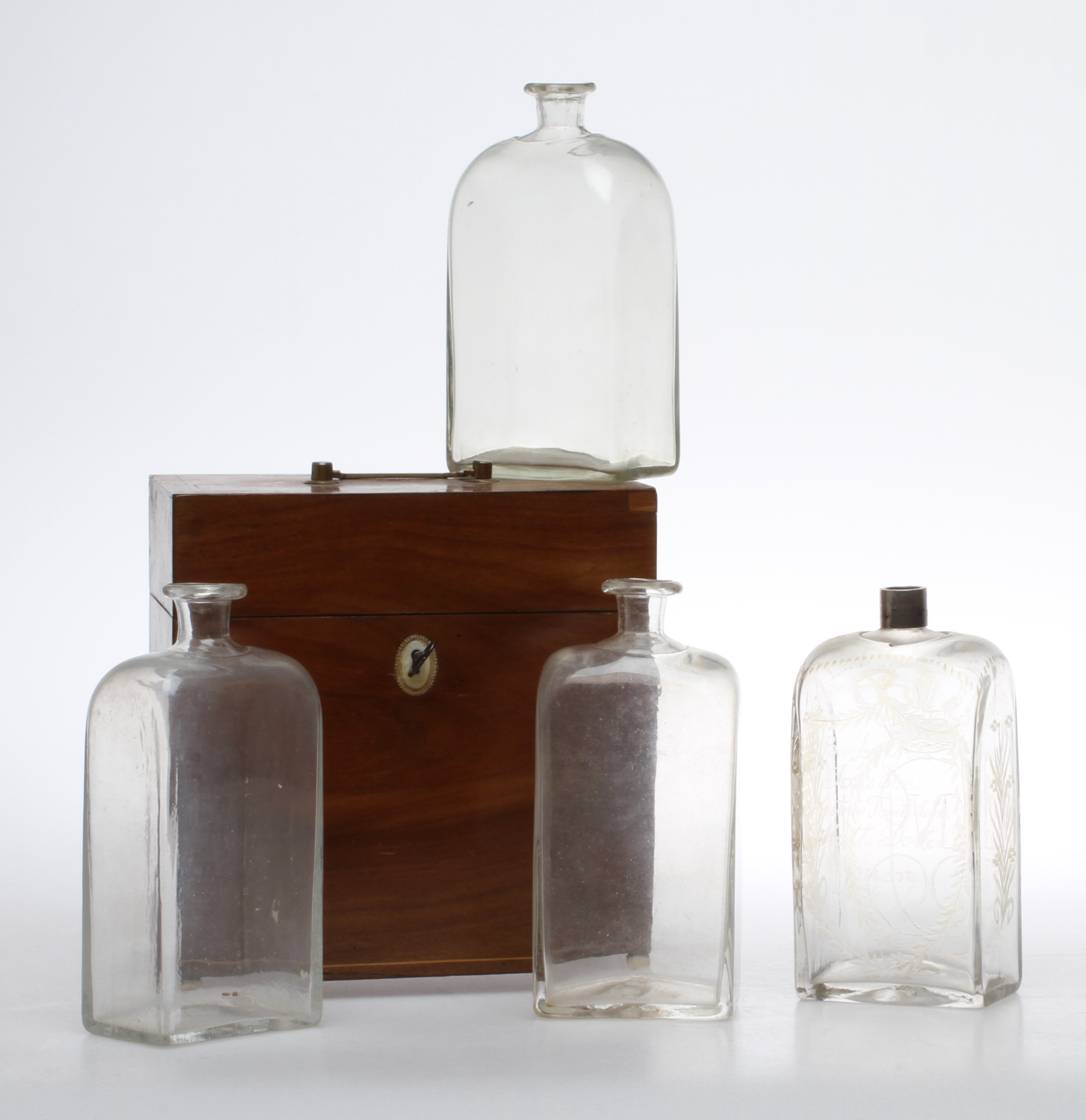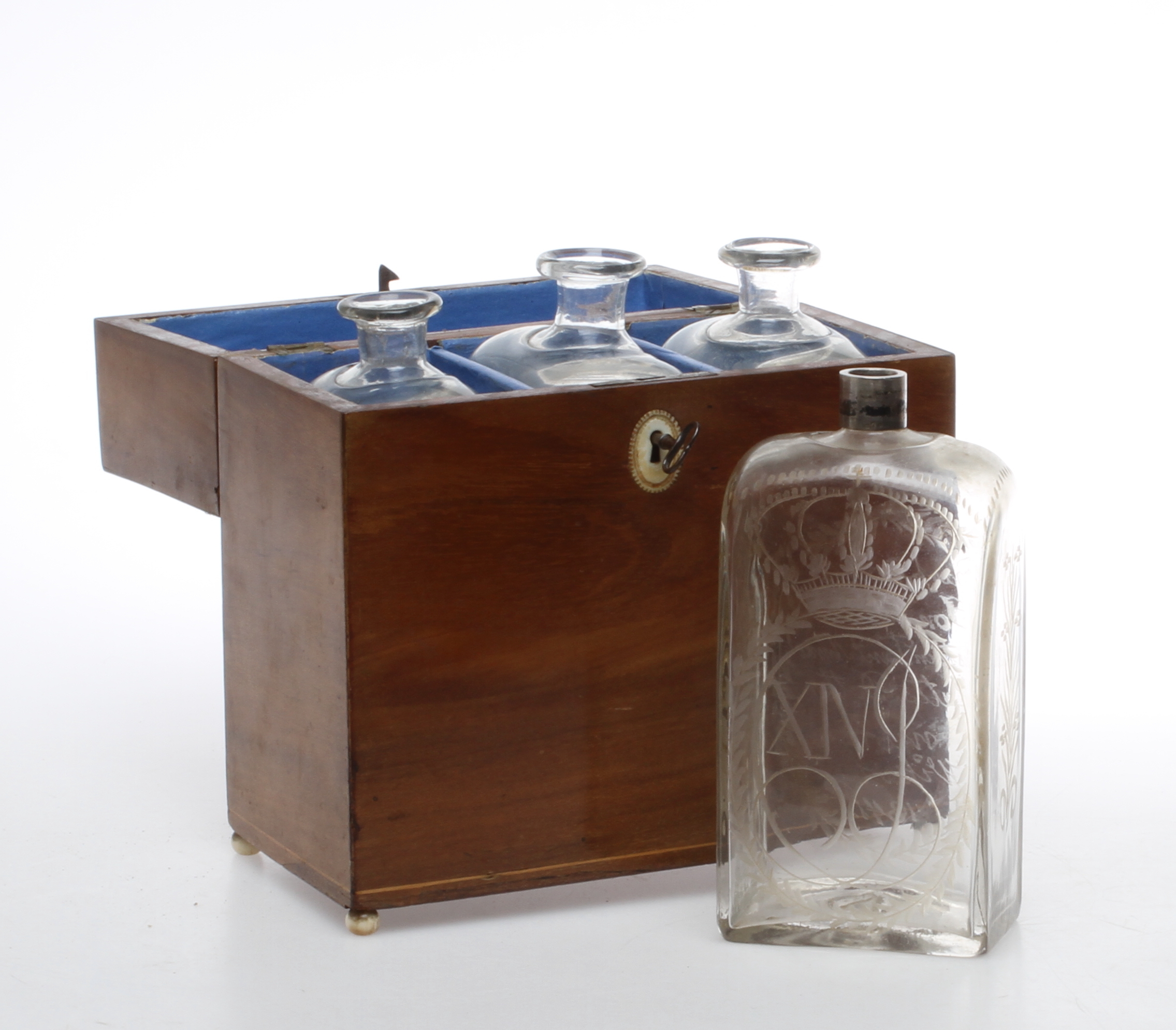 154207. BOTTLE BOX, mit drei Plutnor, PLUNTA, 1800er.
