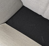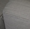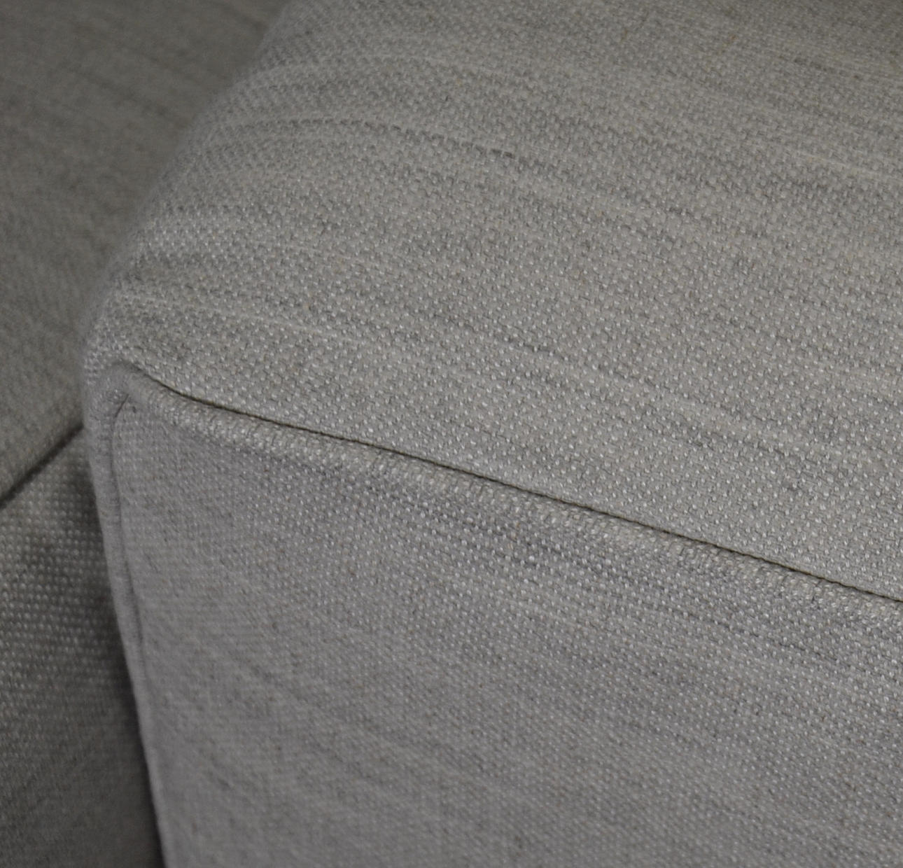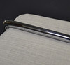 Stahlgestell verchromt, mit Kissen in hellgrauem Stoff.