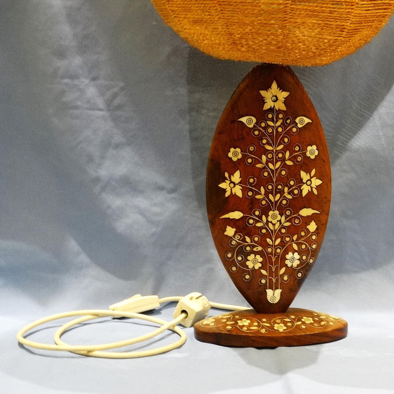 1547939. LAMPE. HOLZ-INTARSIEN, geflochtener Schirm.