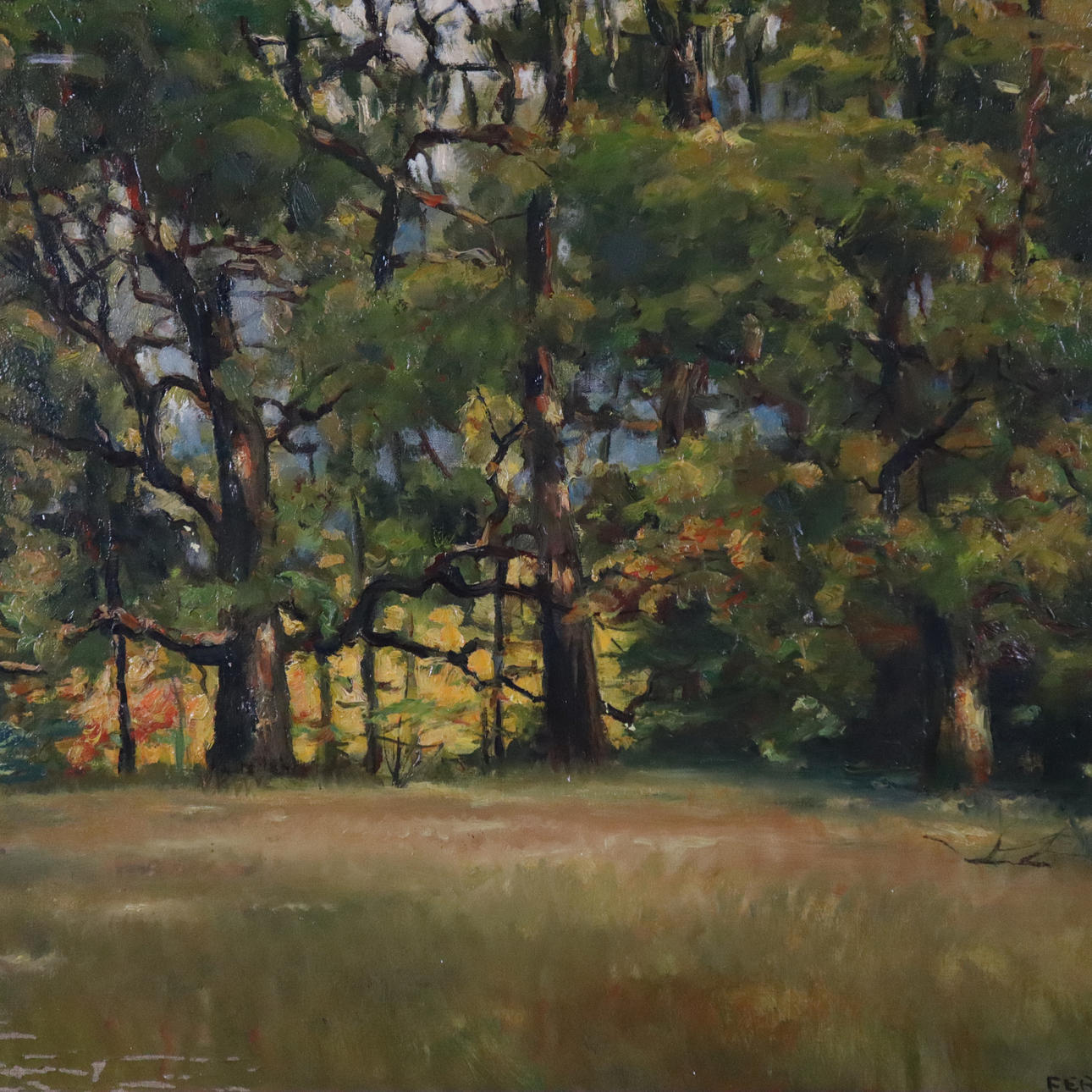 Barth, Ferdinand (1902 Darmstadt-1979 Lautertal) - "Eichenwald", um 1950, Öl auf Leinwand, unten rechts signiert, verso bezeichnet "5983 Ferdinand Barth Darmstadt", ungerahmt, ca.65,5x85,5cm.