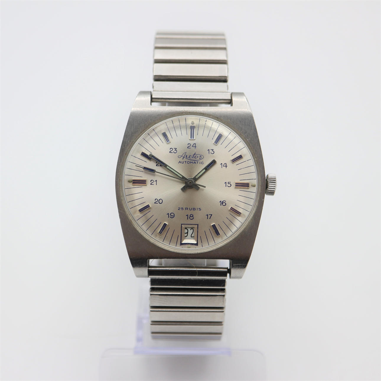 Arctos Automatic Armbanduhr, 25 Rubis, date Anzeige, waterprotected, Edelstahl, Gehäusedurchmesser ohne Krone: 34 mm.