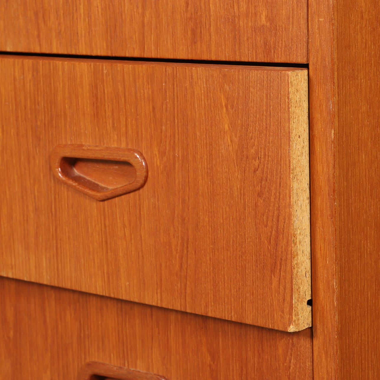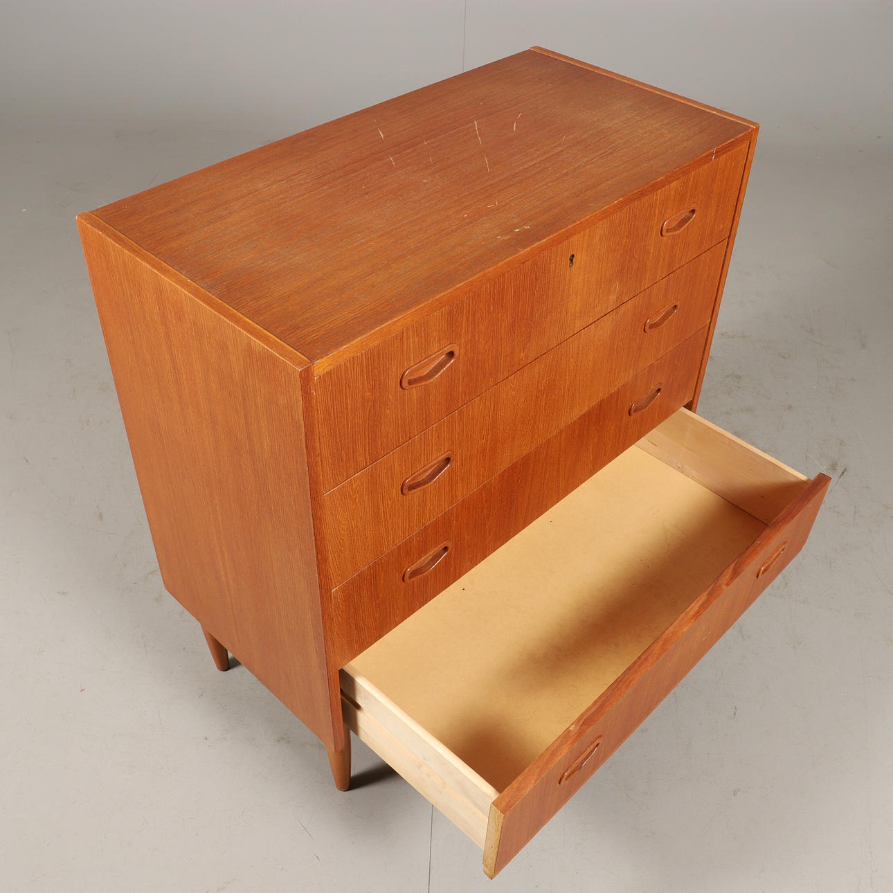 1554268. Kommode, 4 Schubladen, Teak/Buche, Mitte 20. Jahrhundert.