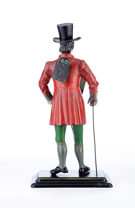 1554946. FIGURENUHR eines schwarzwälder Uhrenträgers, handbemalt.