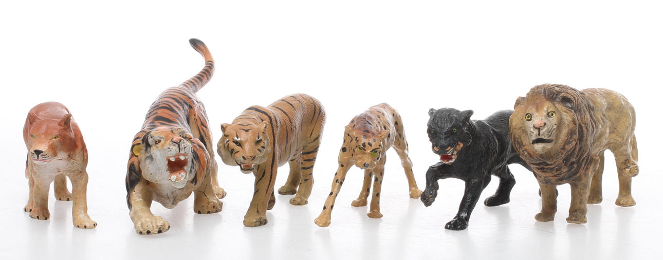 155616. ELASTOLIN 8 Raubtiere. Löwe, Tiger, Gepard und Puma.