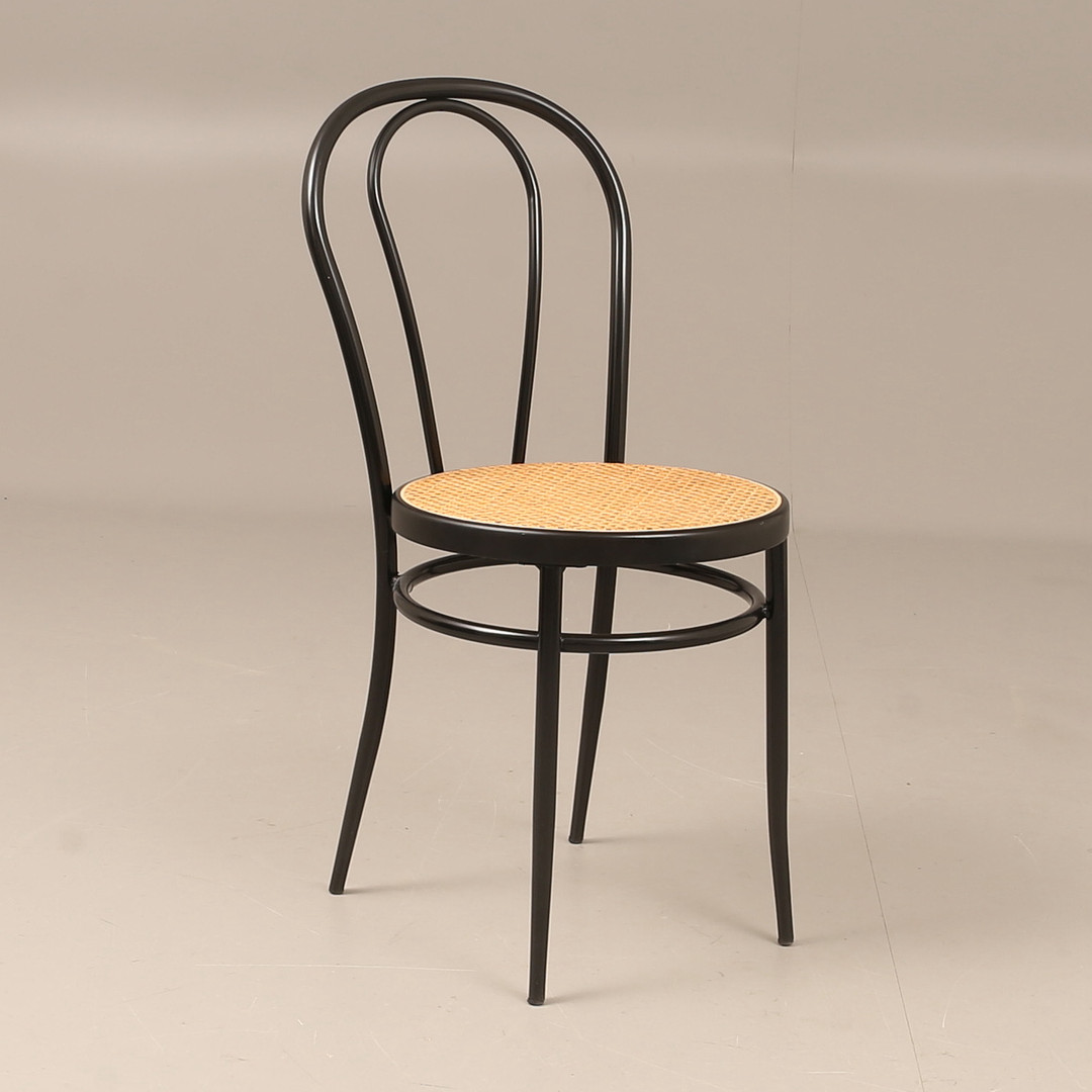1557053. Stuhl, Metall mit geflochtener Sitzfläche.