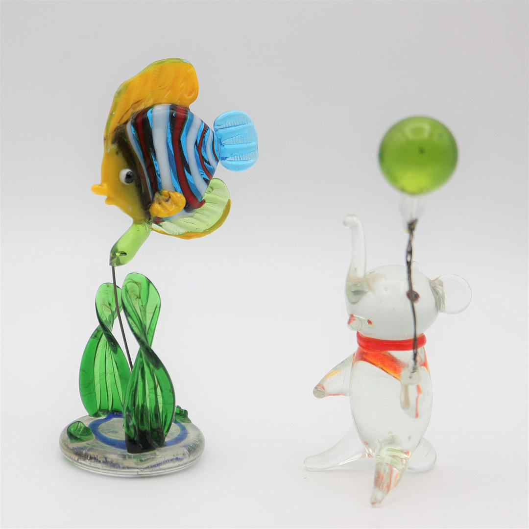 Vintage Murano Glas Figuren, made in Italy, Fisch & Bär, Höhe Fisch: 10 cm, Höhe Bär: 9,5 cm.