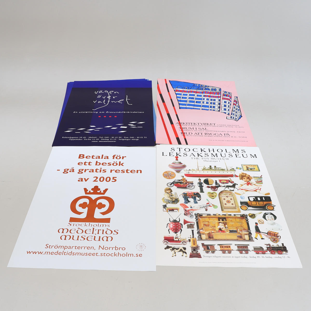 Unter anderem aus dem Spielzeugmuseum, dem Schifffahrtsmuseum, dem schwedischen Pressemuseum usw. Etwa 100 x 70 cm.