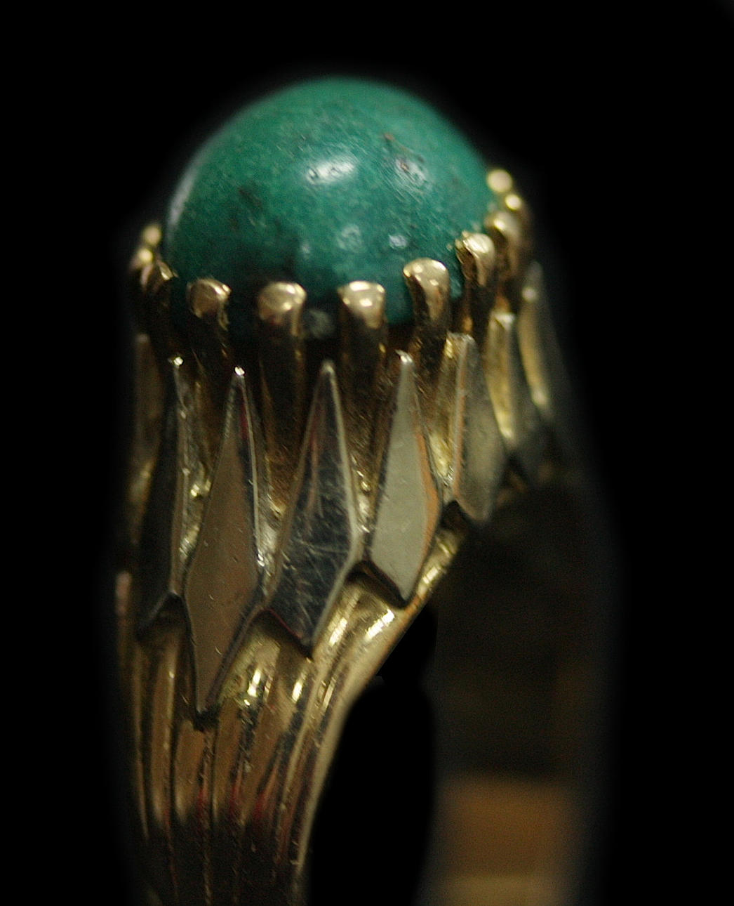 1567539. RING, 18 Karat Gold, grüner Stein.