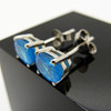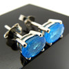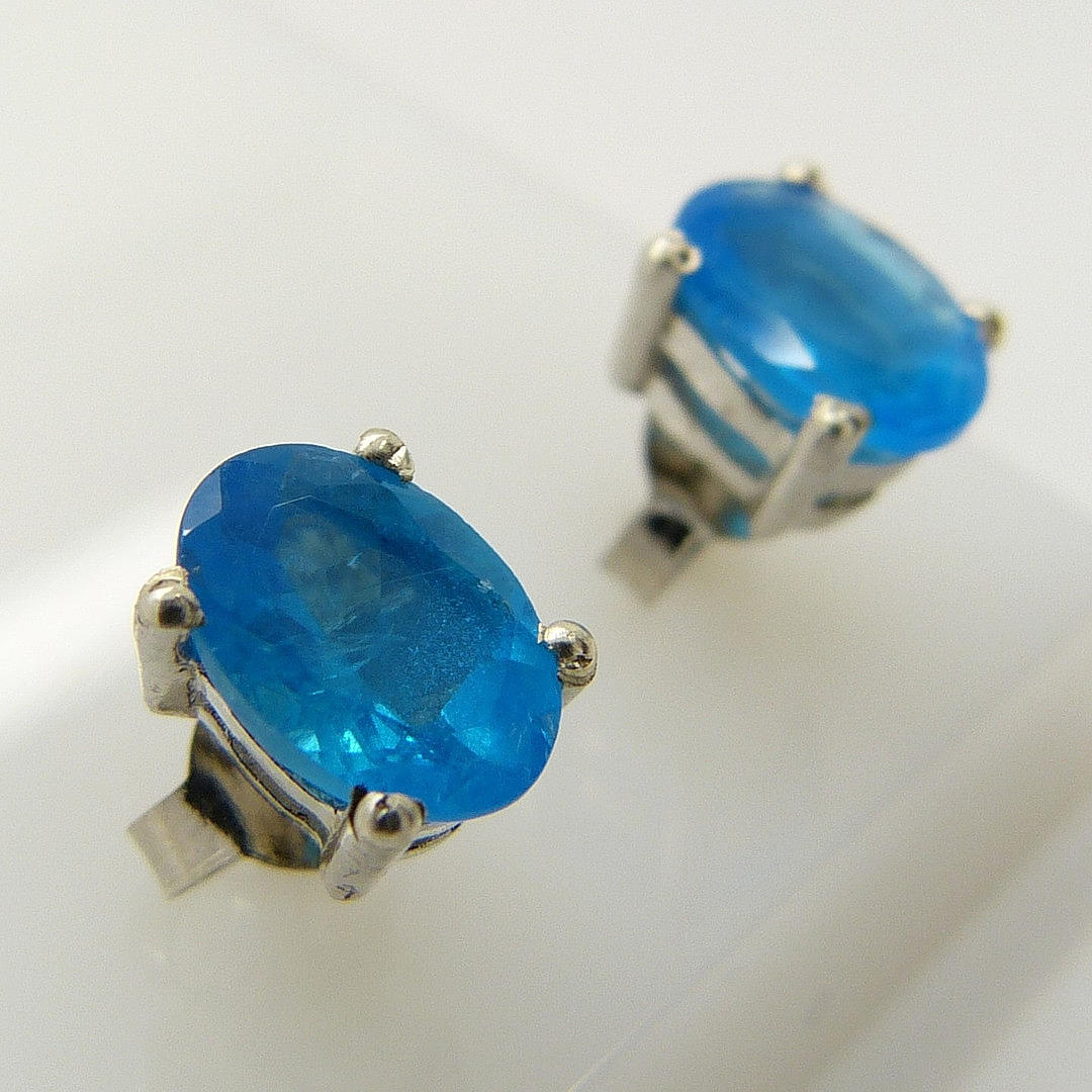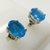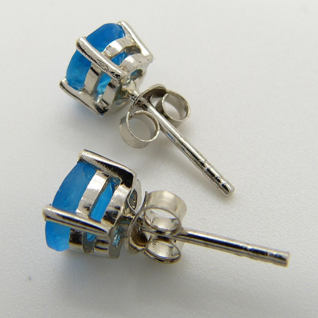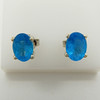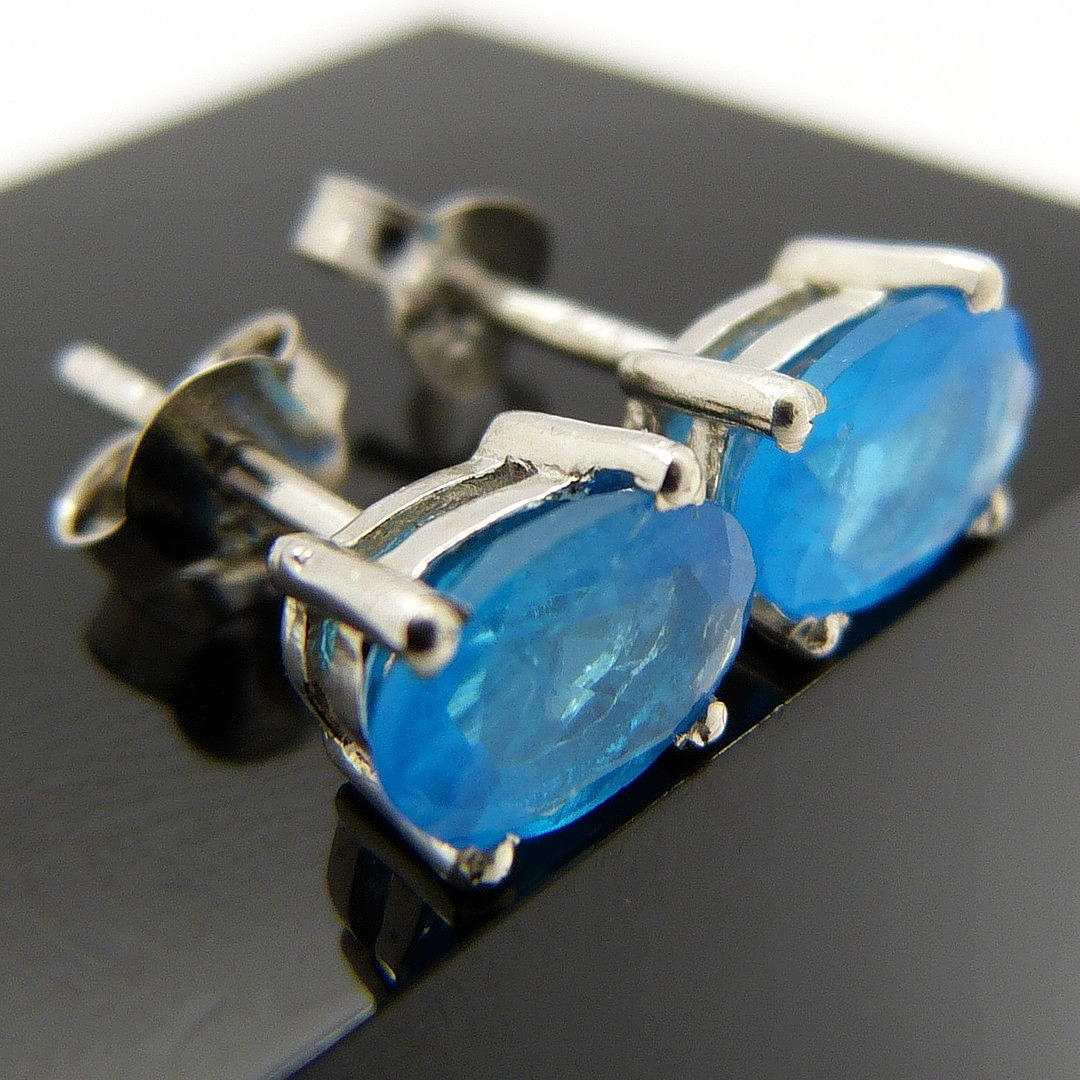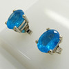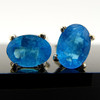 Ein Paar neonblaue Apatit-Ohrstecker im Ovalschliff.