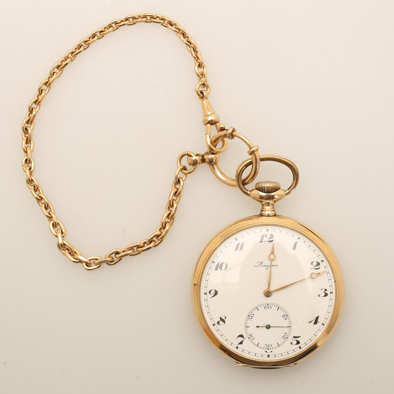 1571879. TASCHENUHR, Longines, 14 Karat Gold.