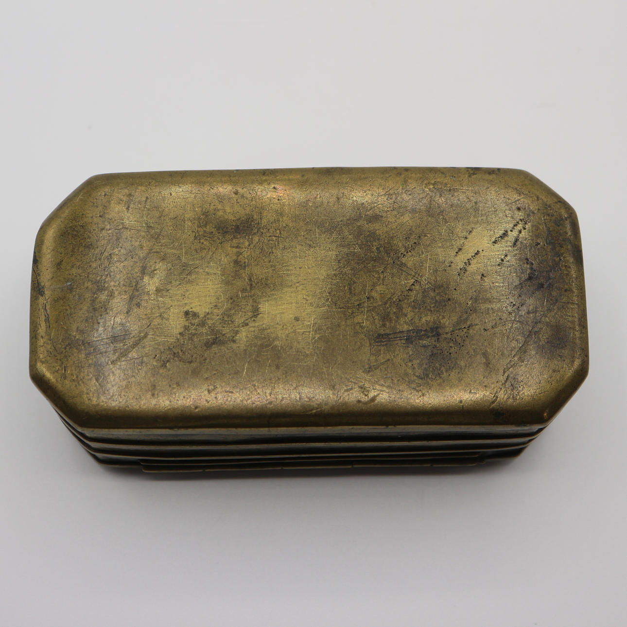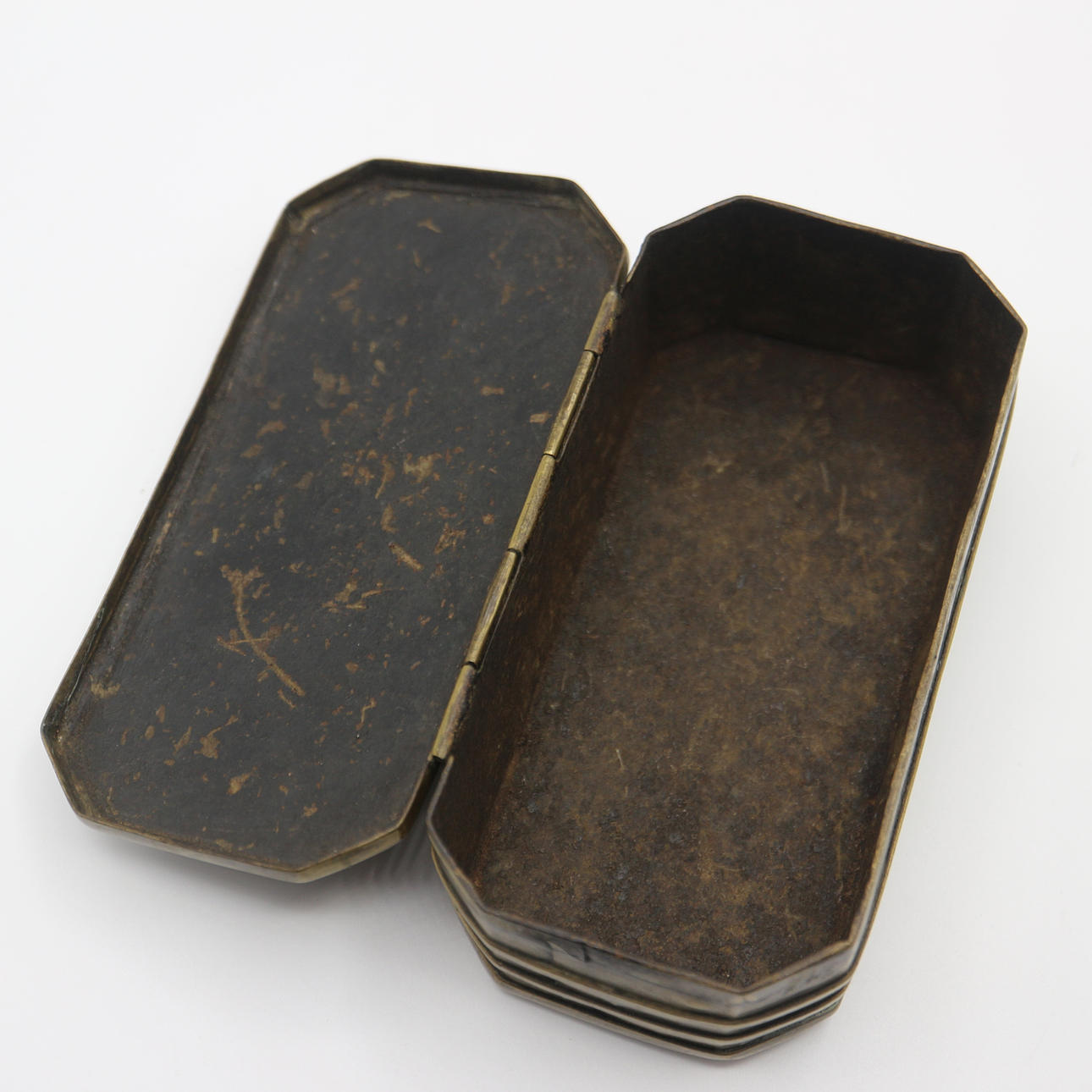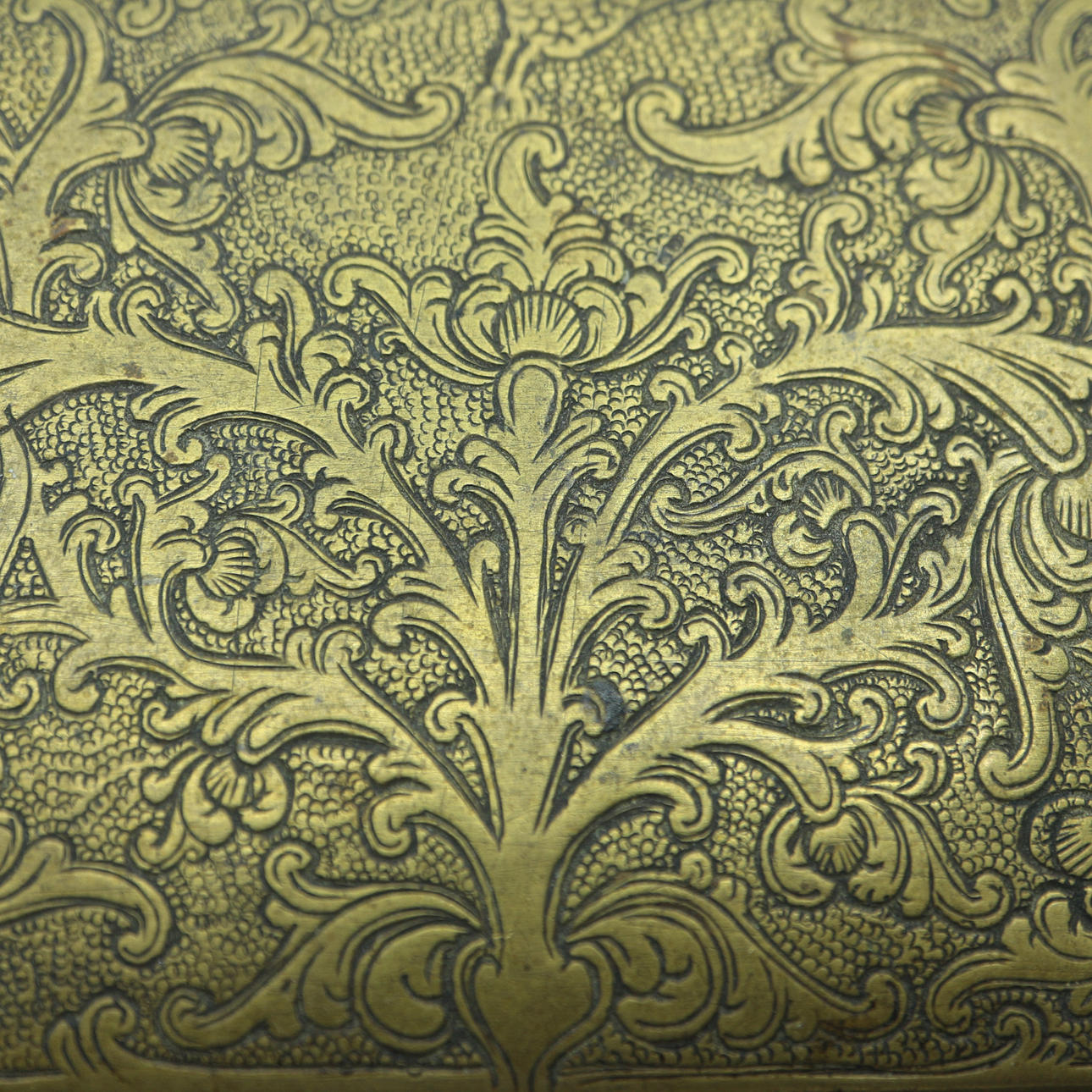 Barocke Tabakdose, Messing, Feine Gravur, 18. Jahrhundert.