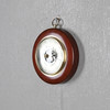 Gestell aus gebeiztem Holz und Messing. Durchmesser ca. 15 cm.