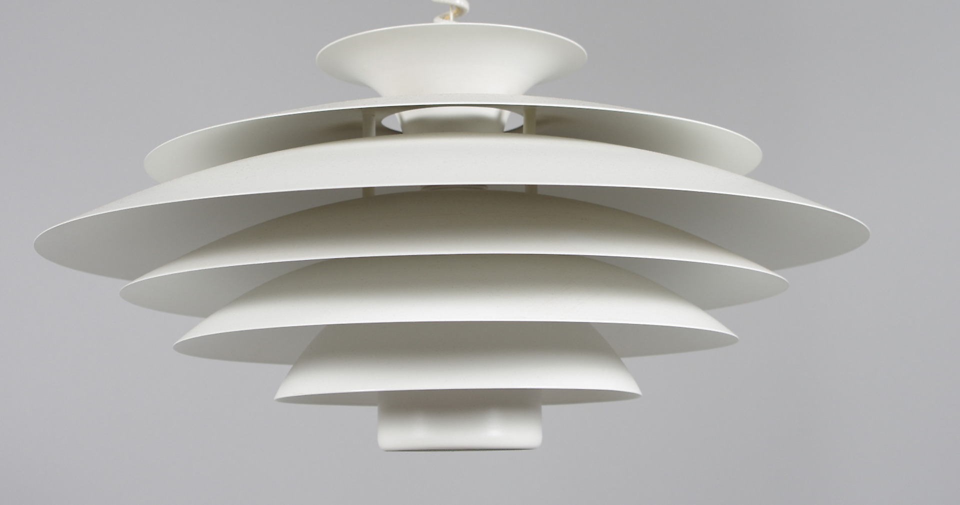 158576. DACHLEUCHTE, weiß lackiertes Blech, Form-Light Pendelleuchte.