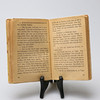 Vergilbte Seiten und weniger Text auf der Innenseite des Buches.