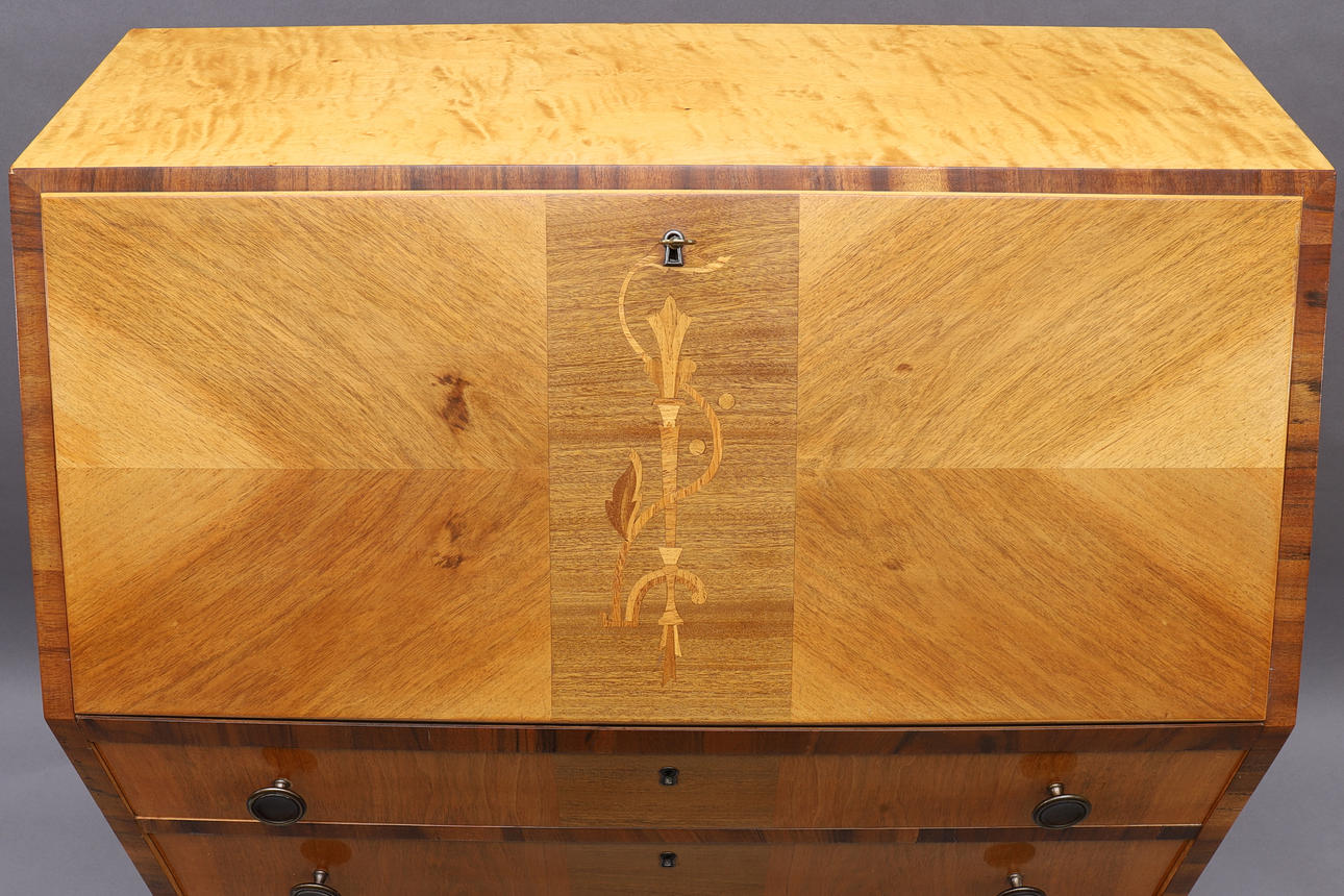 SEKRETÄR, Intarsien, 20. Jahrhundert.