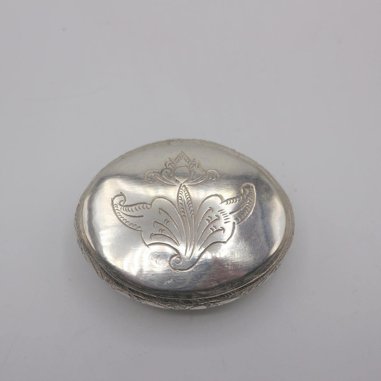 Antike Pillendose aus Asien, Handgetrieben, Silber geprüft 925er.