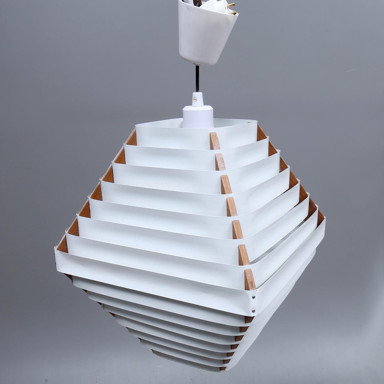 1594083. DECKENLEUCHTE, lackiertes Metall und Holz, Design Peter Leek.