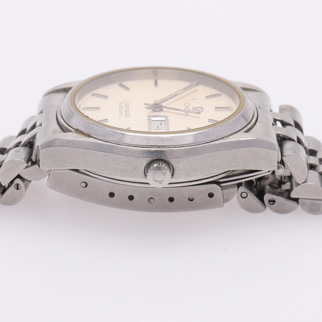 Stahl. Balkenindex, Sekundenzeiger, Datum, Wochentag. Stahlglied. Gehäusenummer 1660264. Art.-Nr. 45 340301.