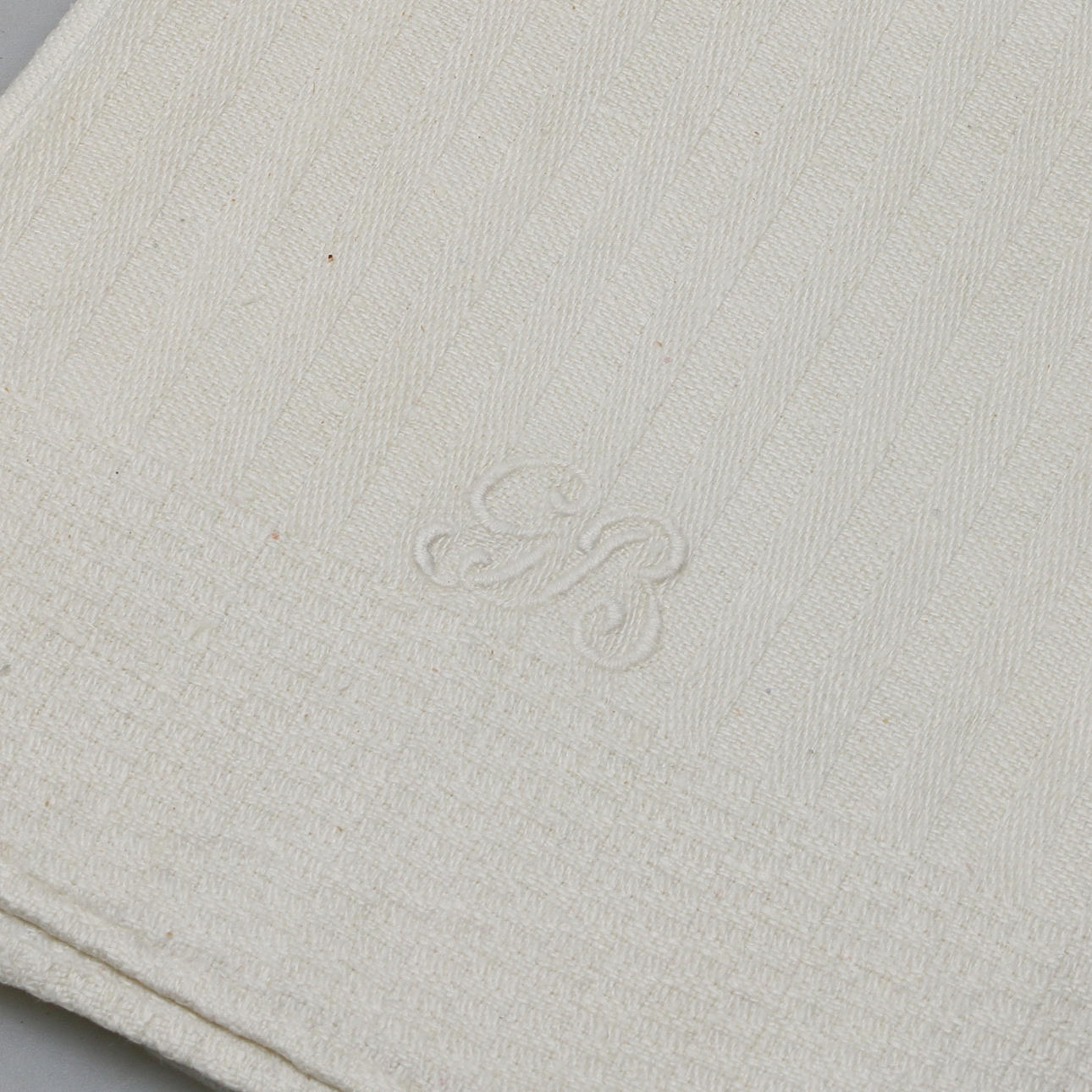 Verschleiß. Flecken. Stickerei mit Monogramm.