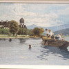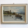 Öl auf Hartfaser, Seelandschaft, Fischer am Tegernsee, circa 1920, Bildmaße: 37,5 x 25,5 cm, Rahmenmaße: 46 x 35 cm.