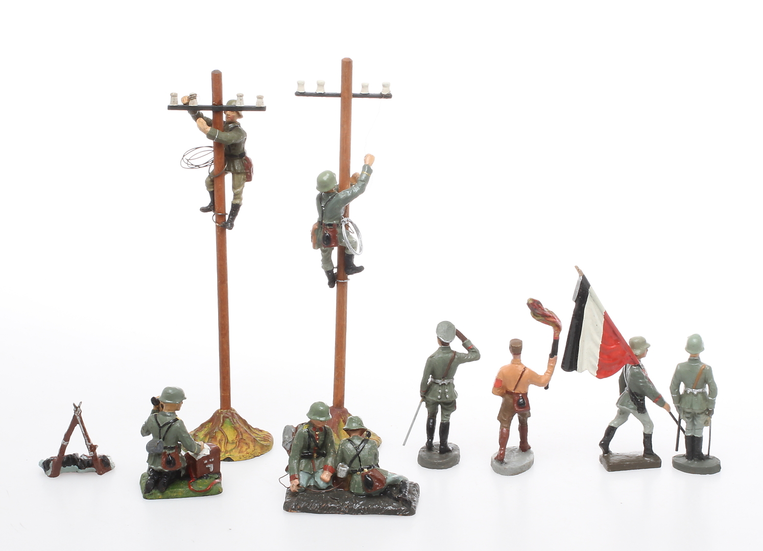 160868. ELASTOLIN LINEOL FIGUREN 9 Teile. Deutsche Soldaten und SA.