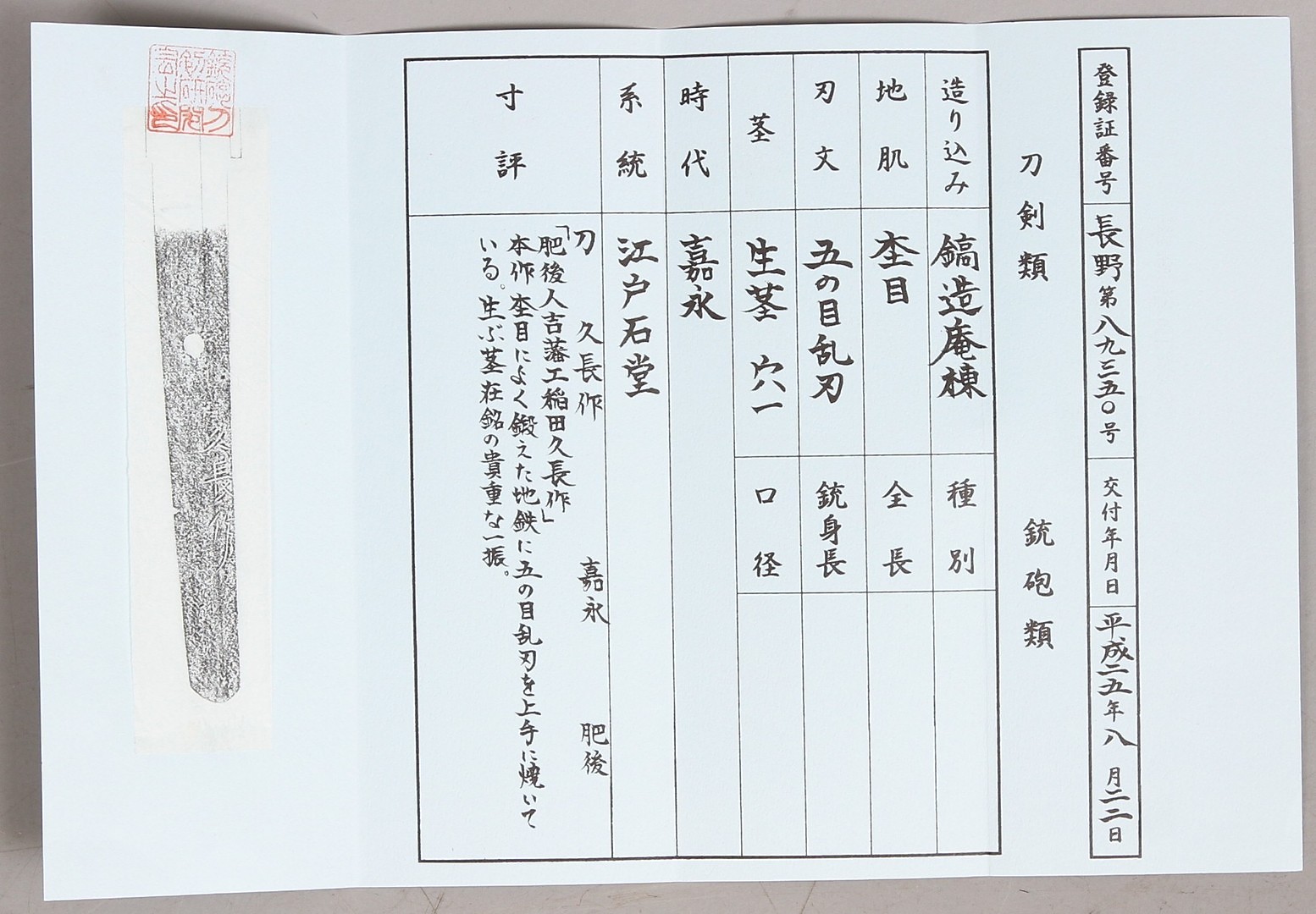 161369. SCHWERT, Japan, HISANAGA 久長 - 1848 嘉永 Kaei.
