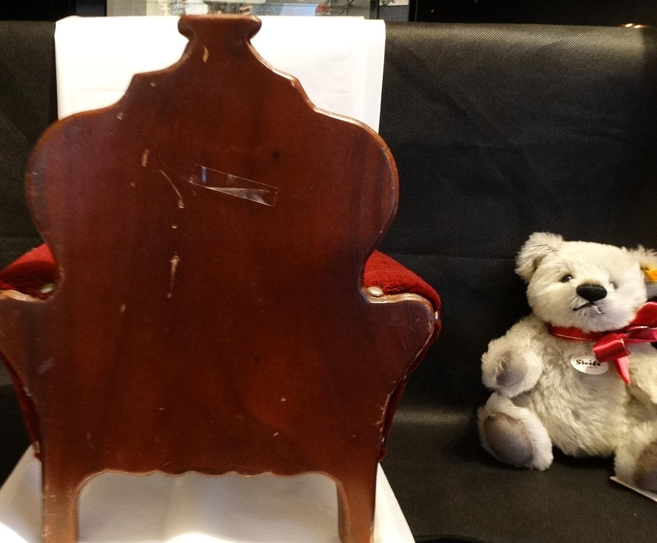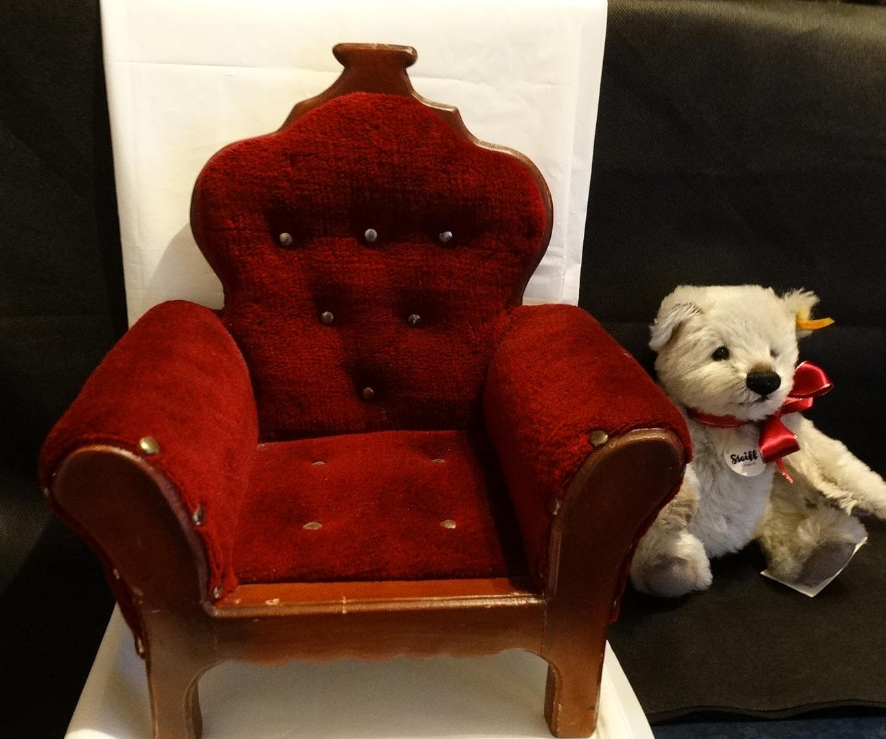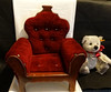 STEIFF-BÄR mit Spielzeug-Sessel.