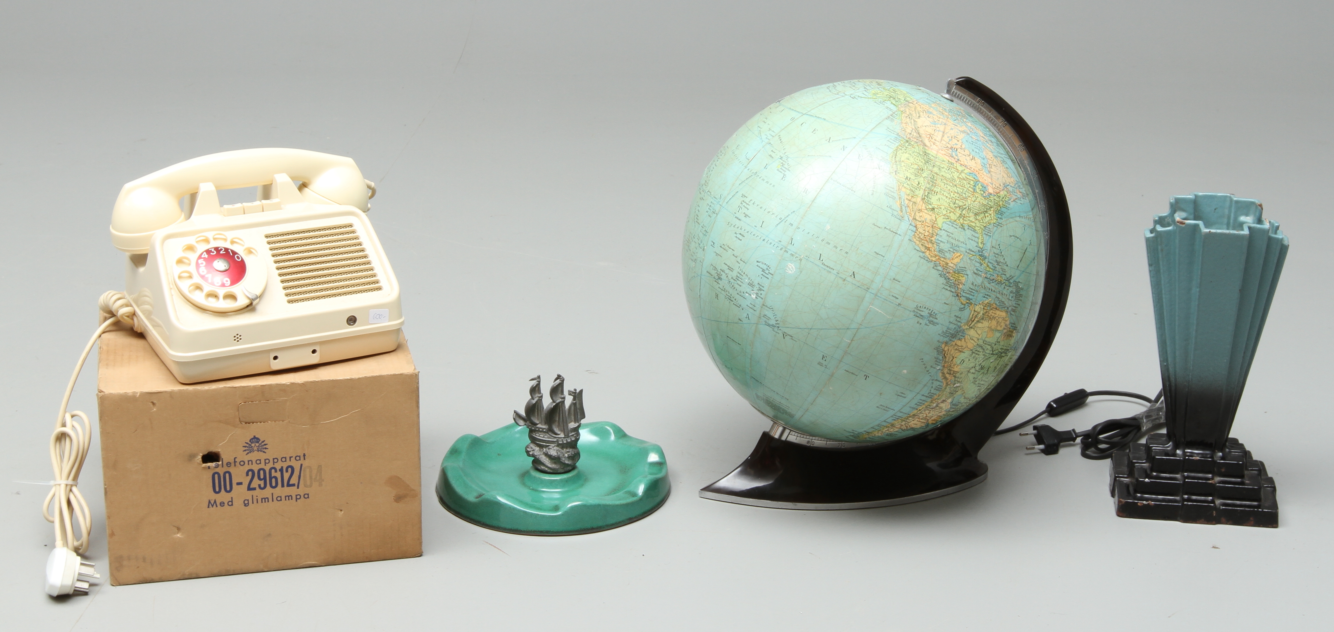 16217. JORDGLOB, VAS, TELEFON, ASKFAT, 1900.