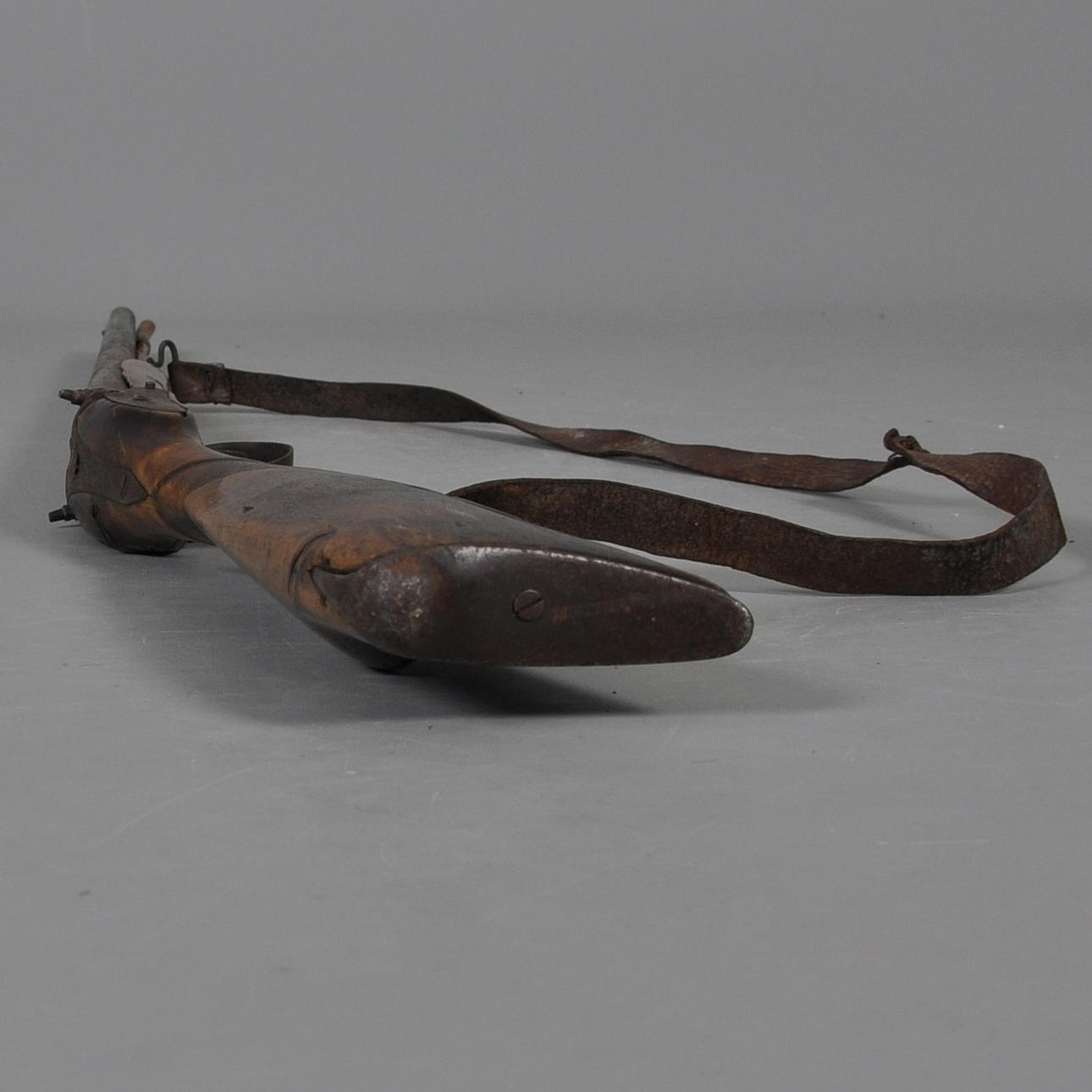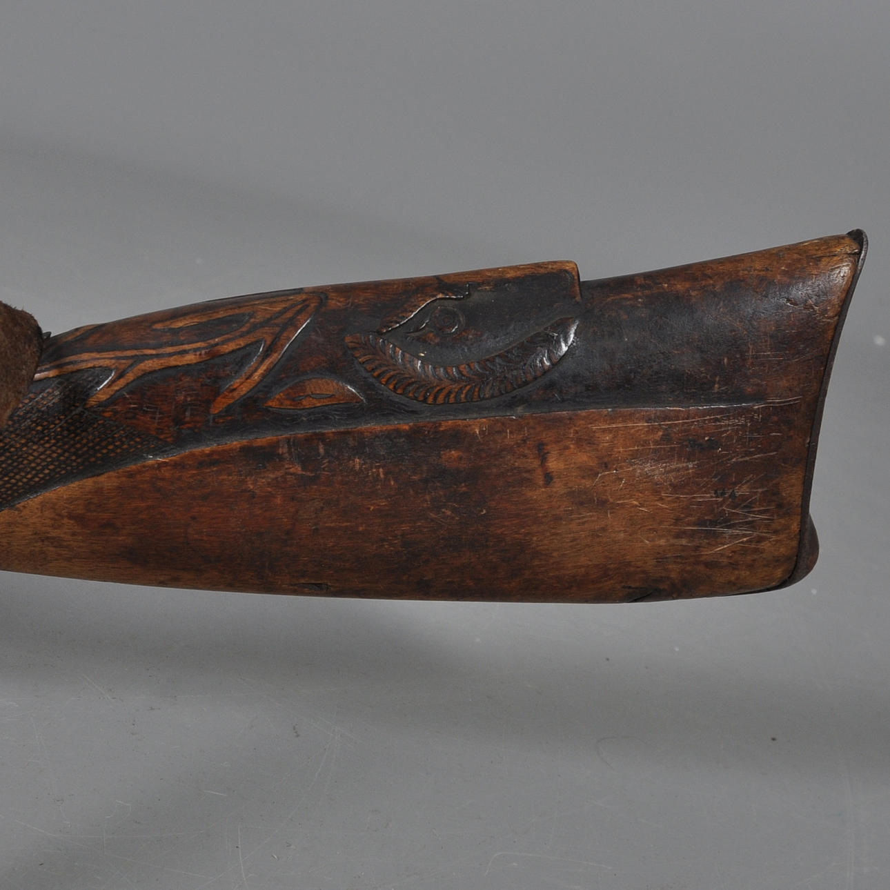 Geschnitzte Dekoration auf dem Kolben Länge ca. 117 cm.
