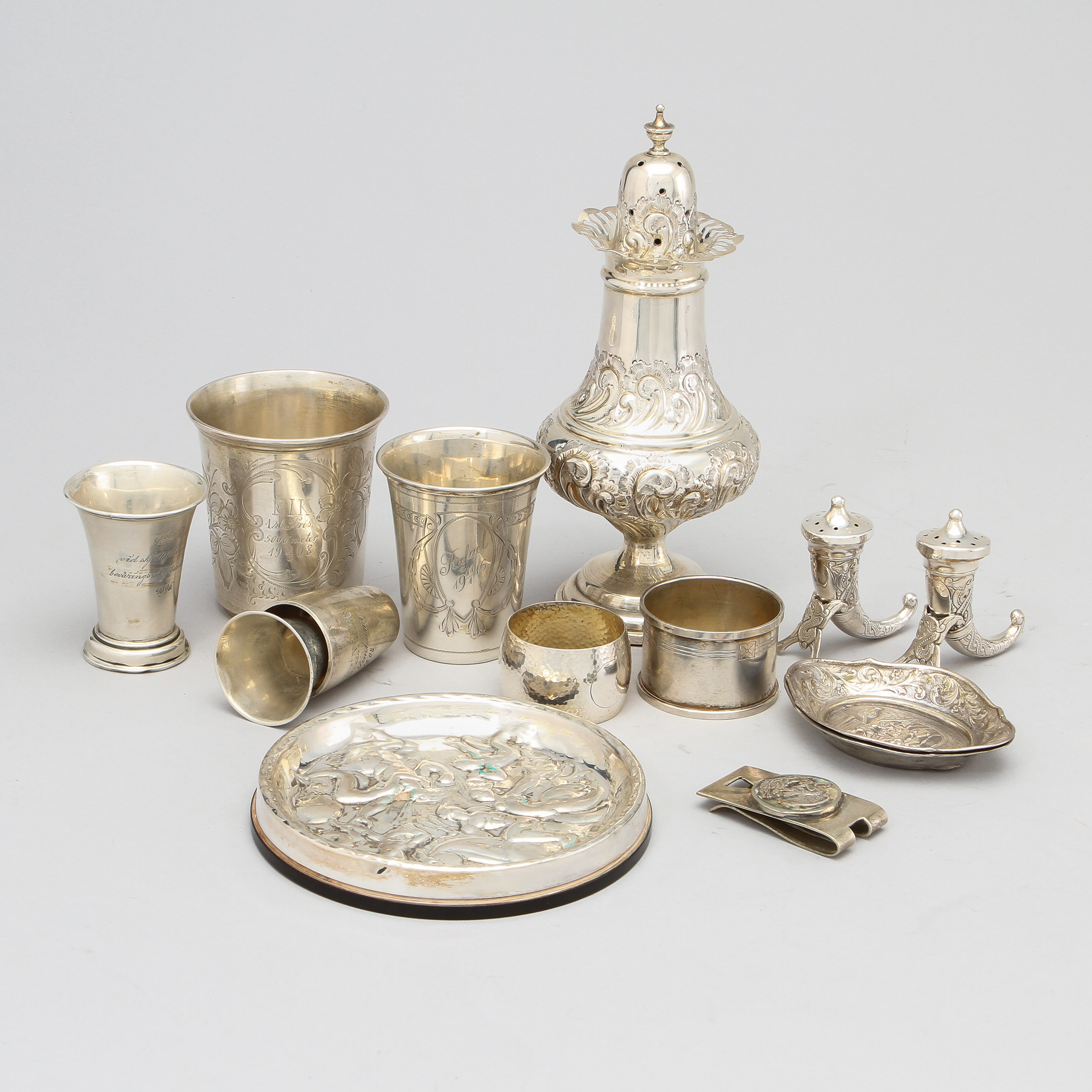 162500. SILBER, 14 Teile, ca. 620 Gramm brutto.