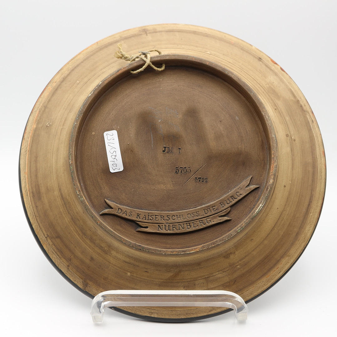 Das Kaiserschloss die Burg Nürnberg Teller, Keramik, handbemalt, Ende 19. Jahrhundert, 5792 limitert, Durchmesser: 24,5 cm, JM signiert.