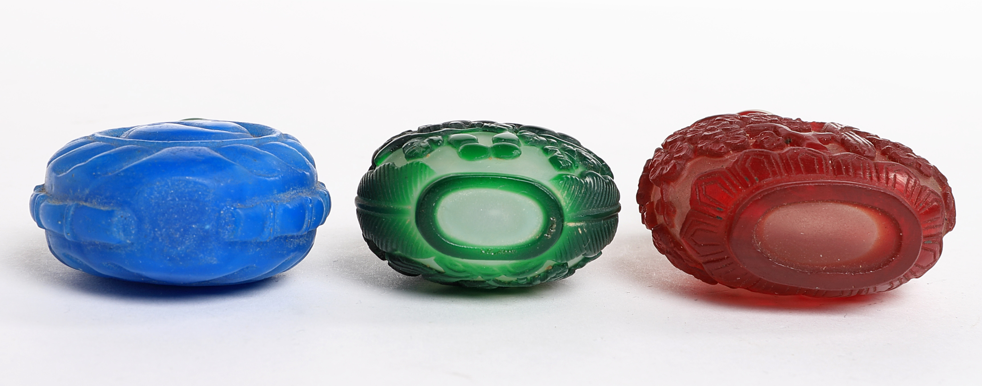 1633239. SNUFF BOTTLES, 3 Stk., Glas, China, Qing, 20. Jh.