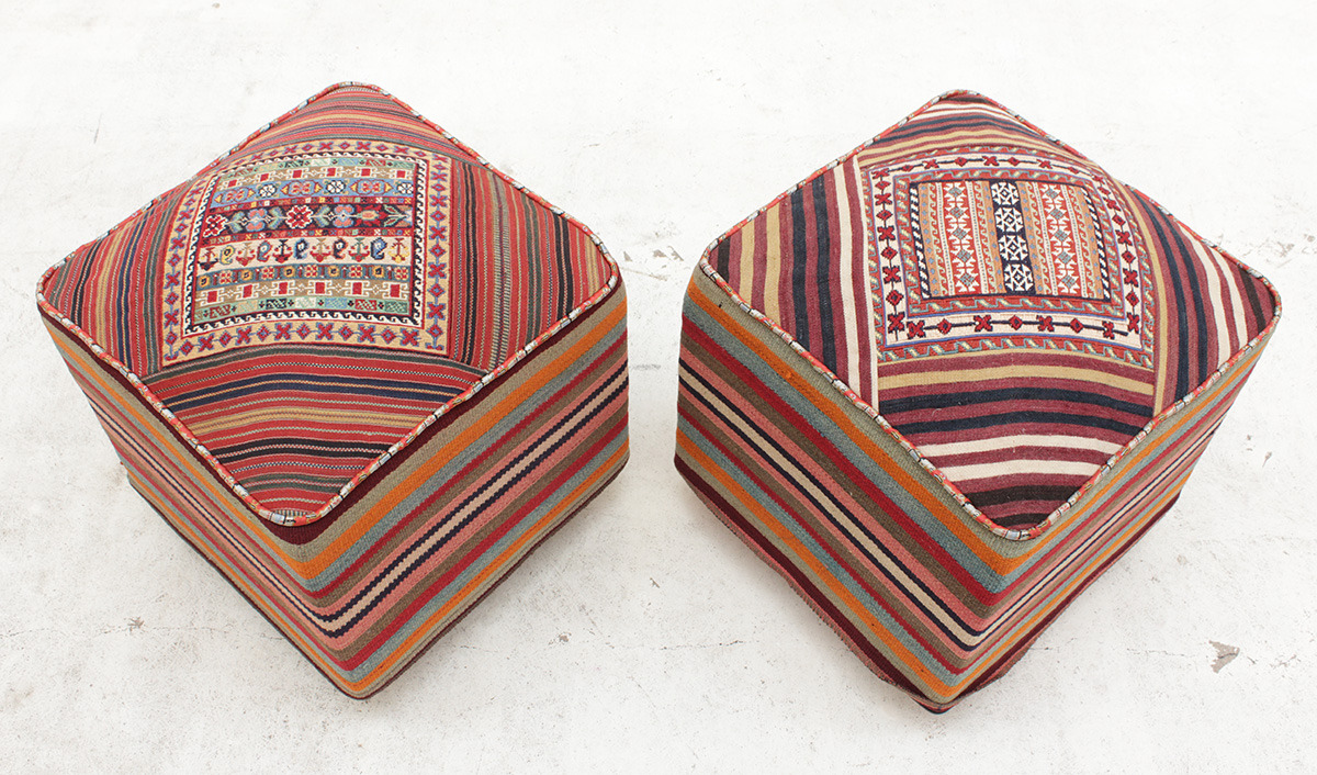 163335. PALETTEN, 2 Stück, mit Kelimstoff bezogen.