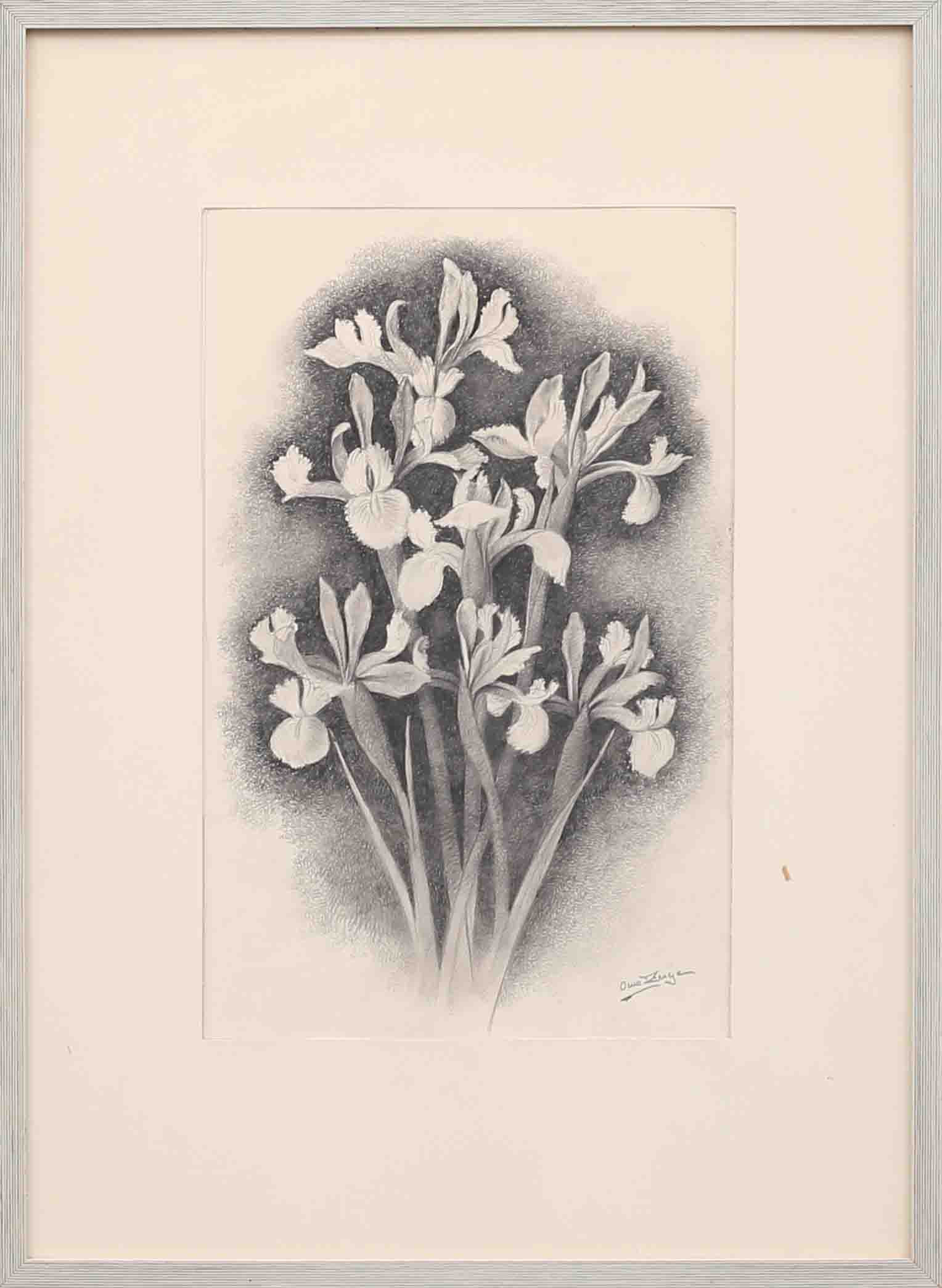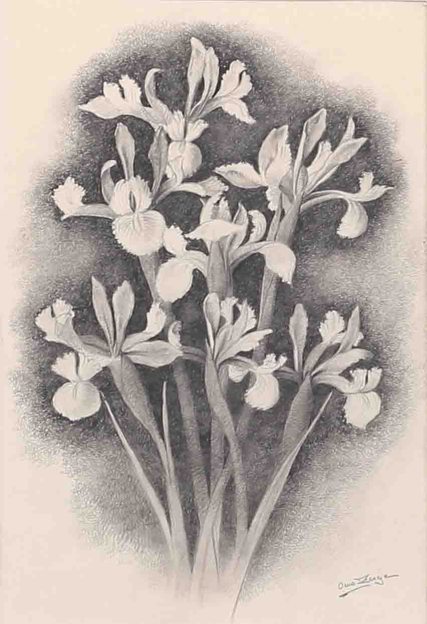 1633978. OWE ZERGE. Blumen, Bleistiftzeichnung, signiert.