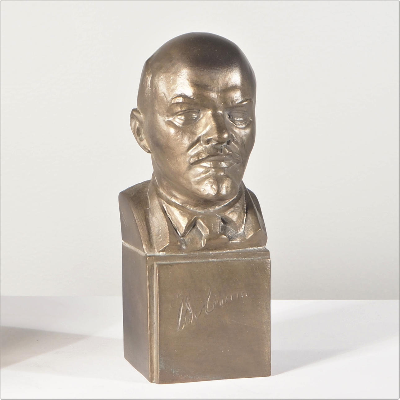 OIDENTIFIERAD KONSTNÄR. Lenin, Büste, patiniertes Metall, signiert.
