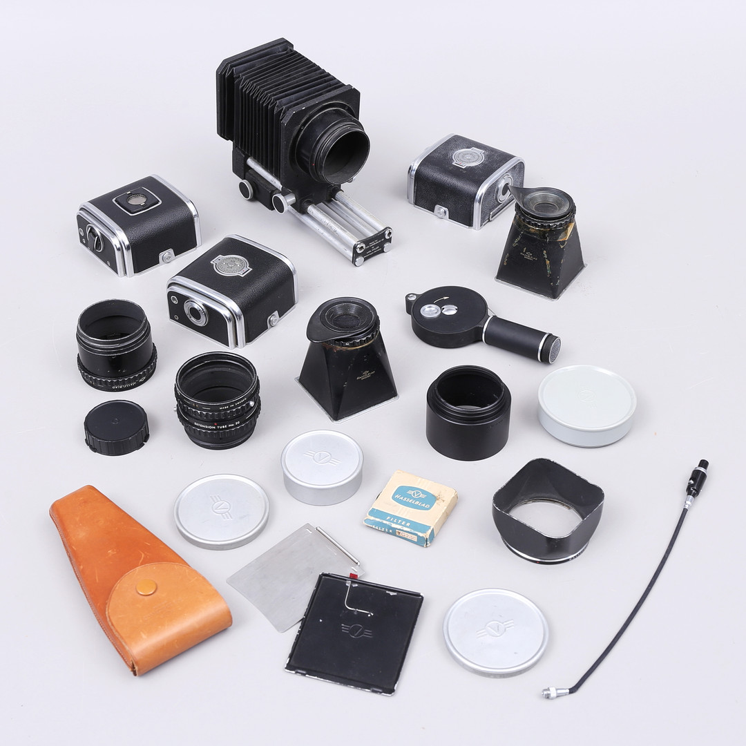 1636571. HAZELBLADE, Zubehör und Kamerateile.