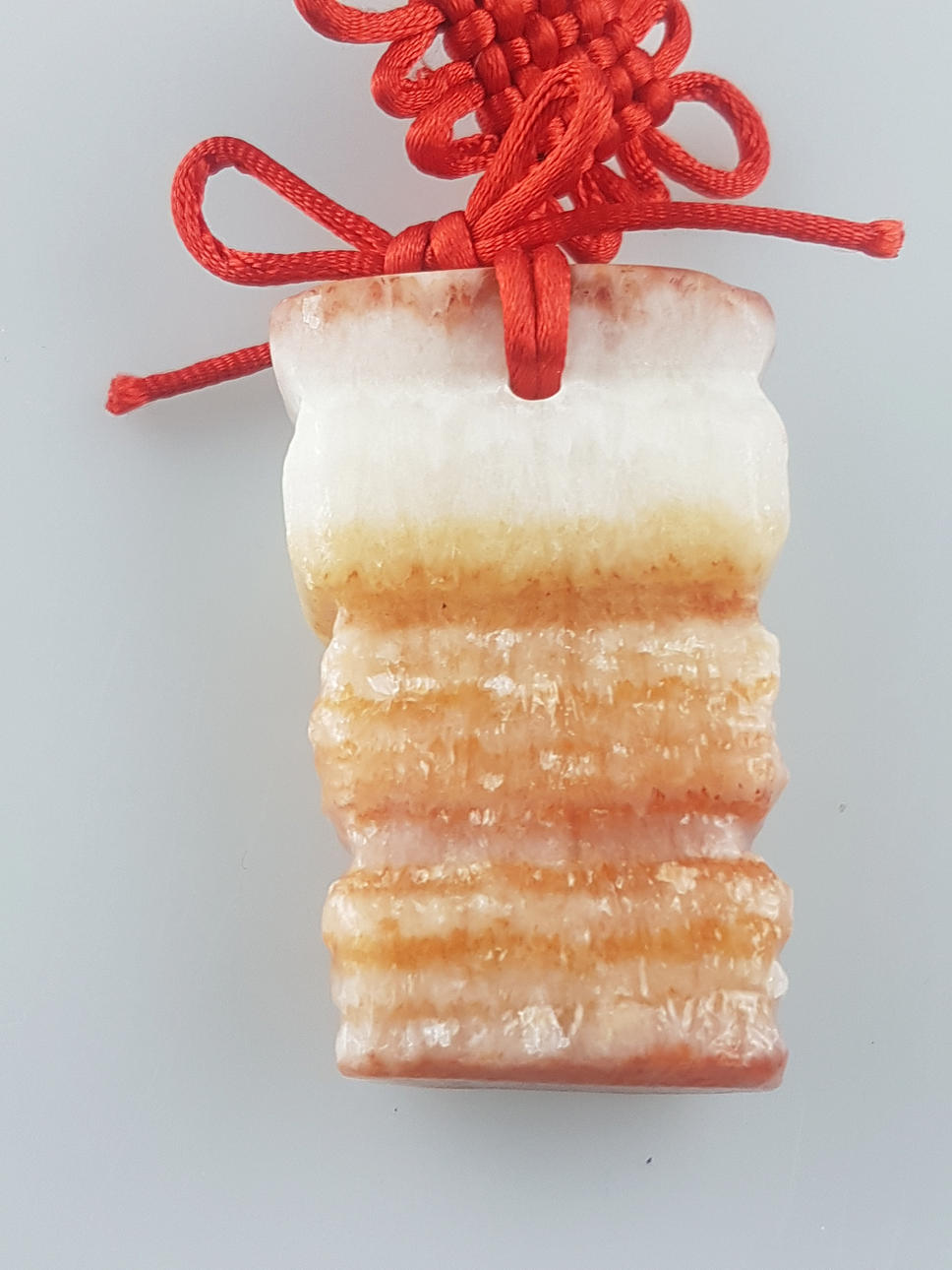 L.ca.6,5cm, an roter Seidenschnur mit Endlosknoten,Gewicht ca.111,5g.