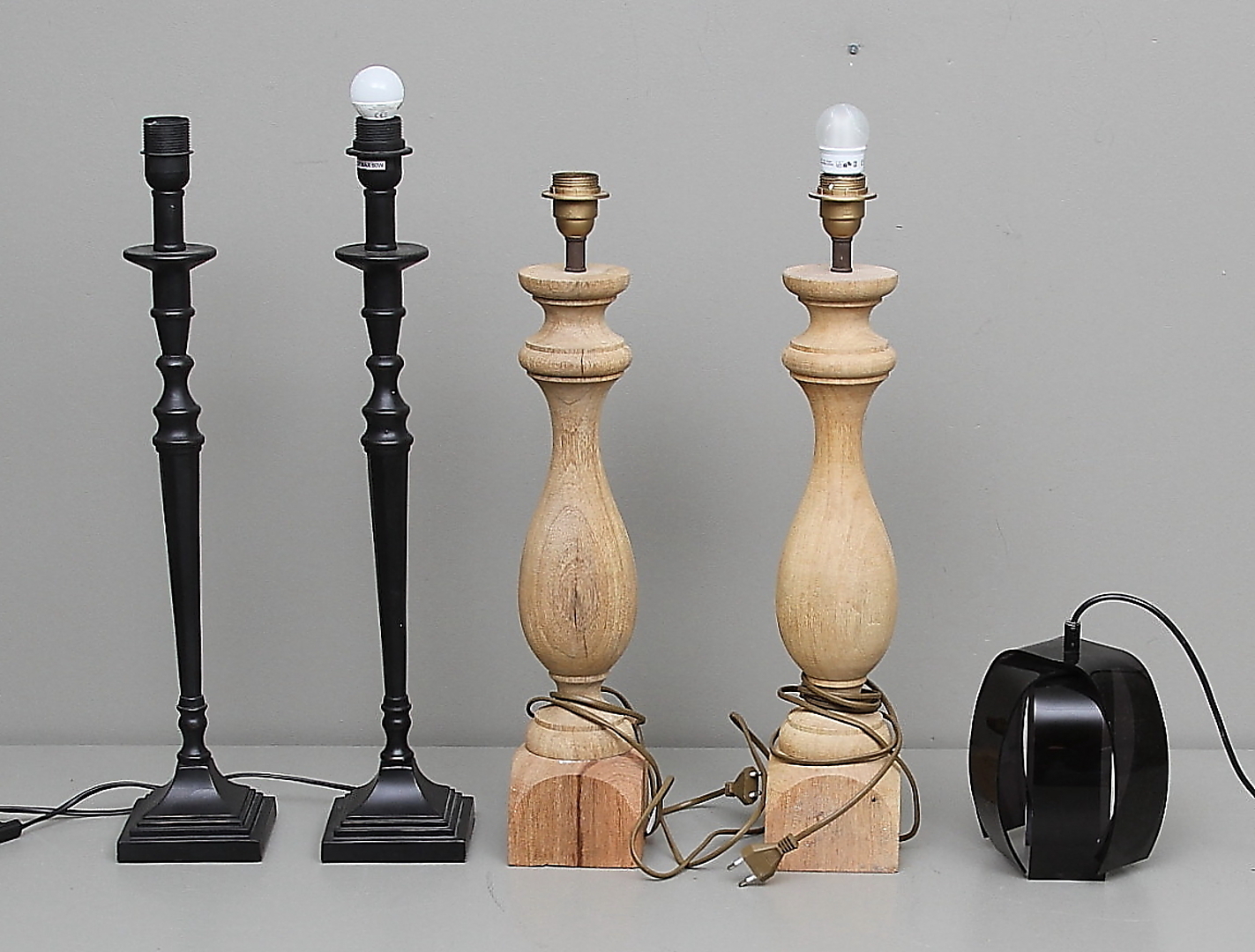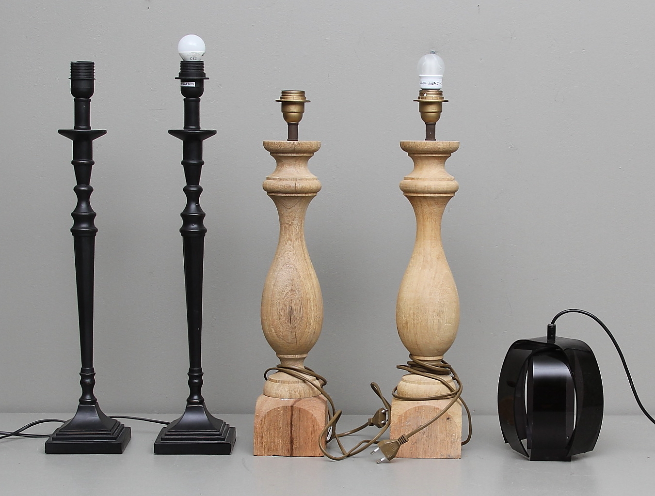 165001. LAMPENFÜSSE, 2 Paar und ein Kunststoffschirm.