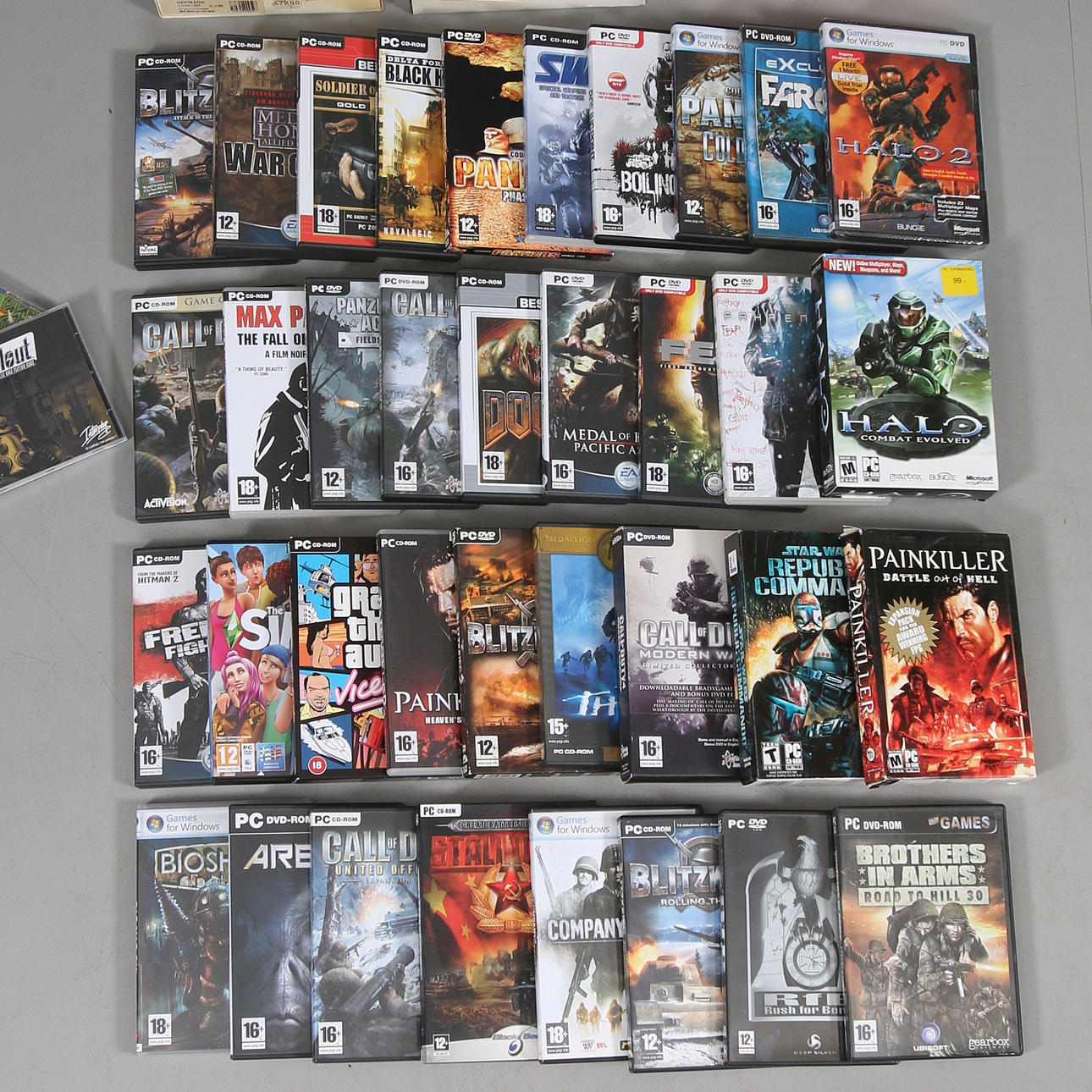 Kratzer. Marken. Oberflächenschmutz. Leichte Verletzungen. Bei Duke Nukem und Age of Empires fehlen den Spielen nur Kartons.