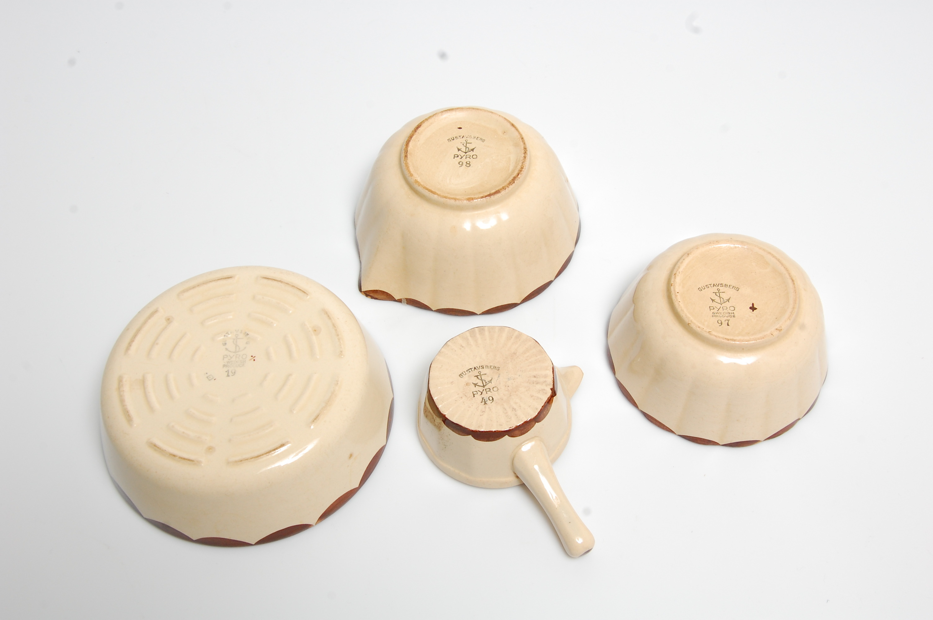 165967. SERVICETEILE, 4 Stück, "Pyro", Gustavsberg.