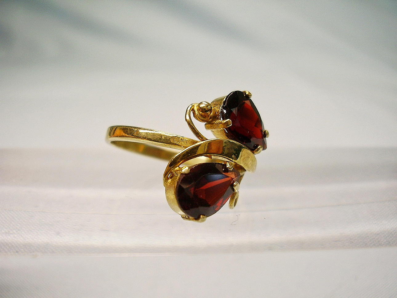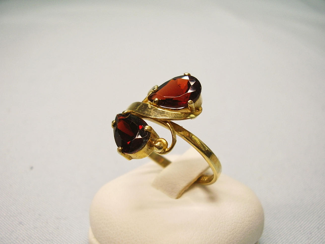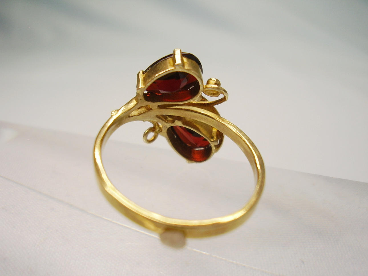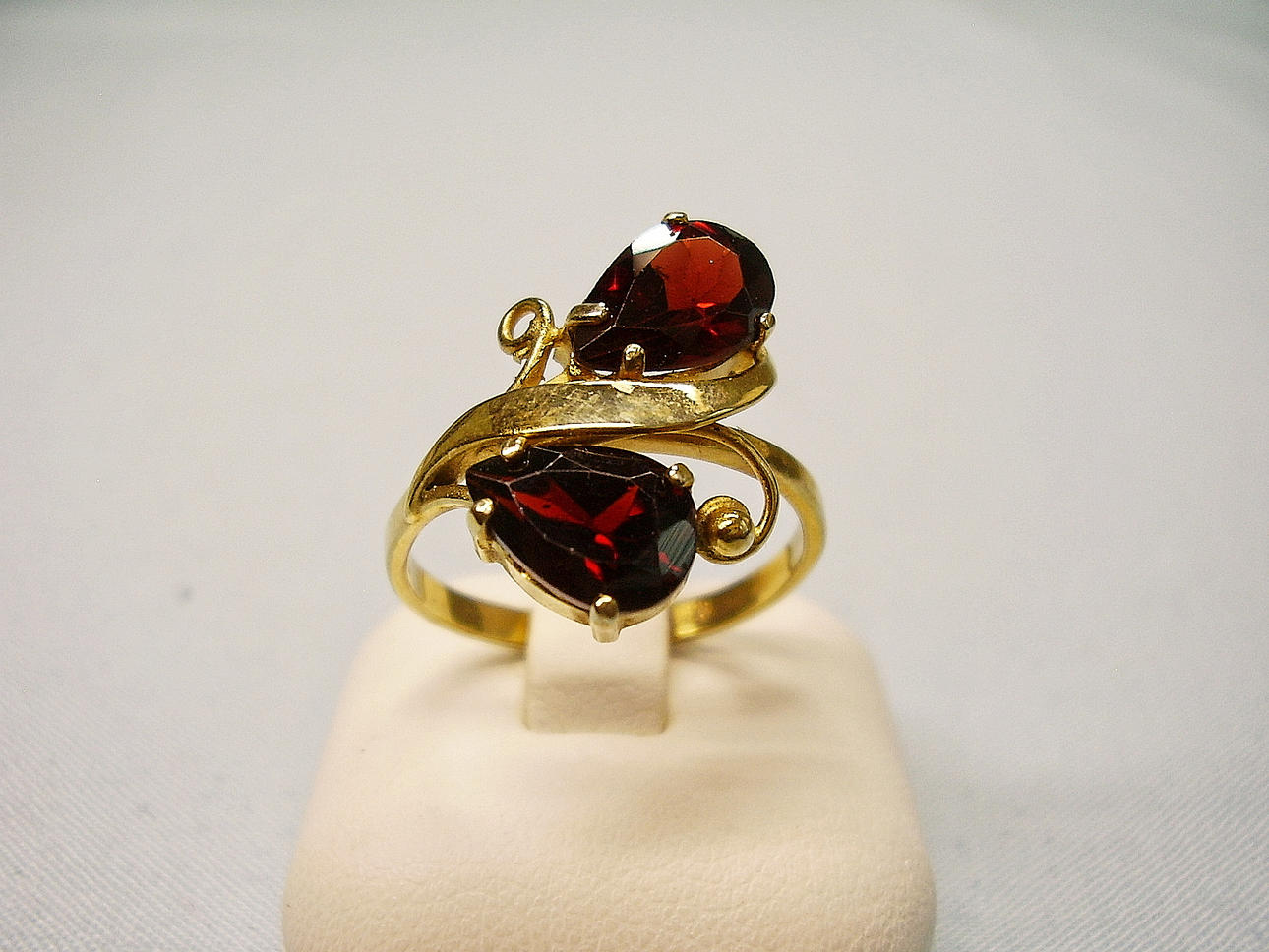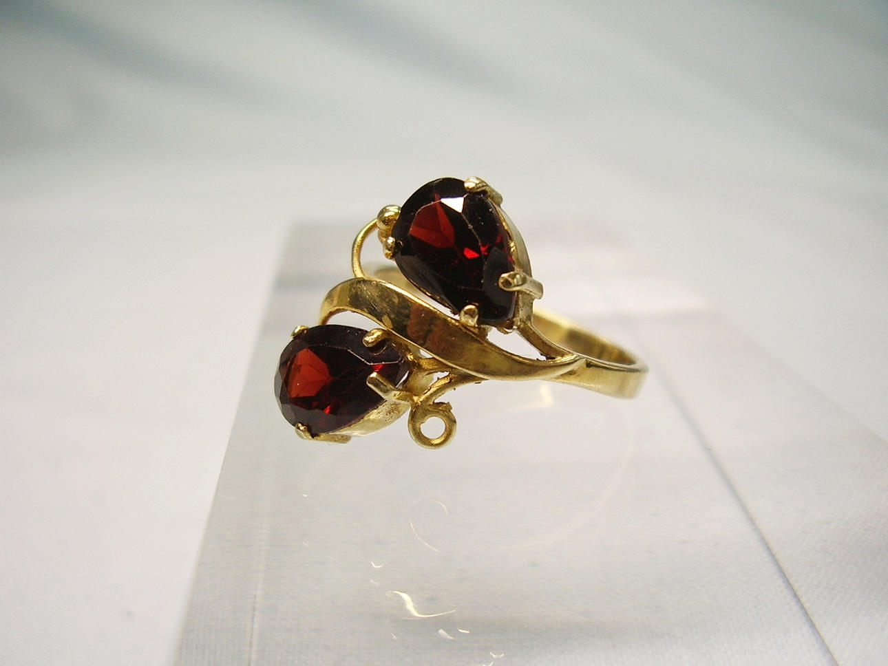 Besetzt mit zwei tropfenförmig facettierten böhmischen Granaten in sehr schöner Brillanz.