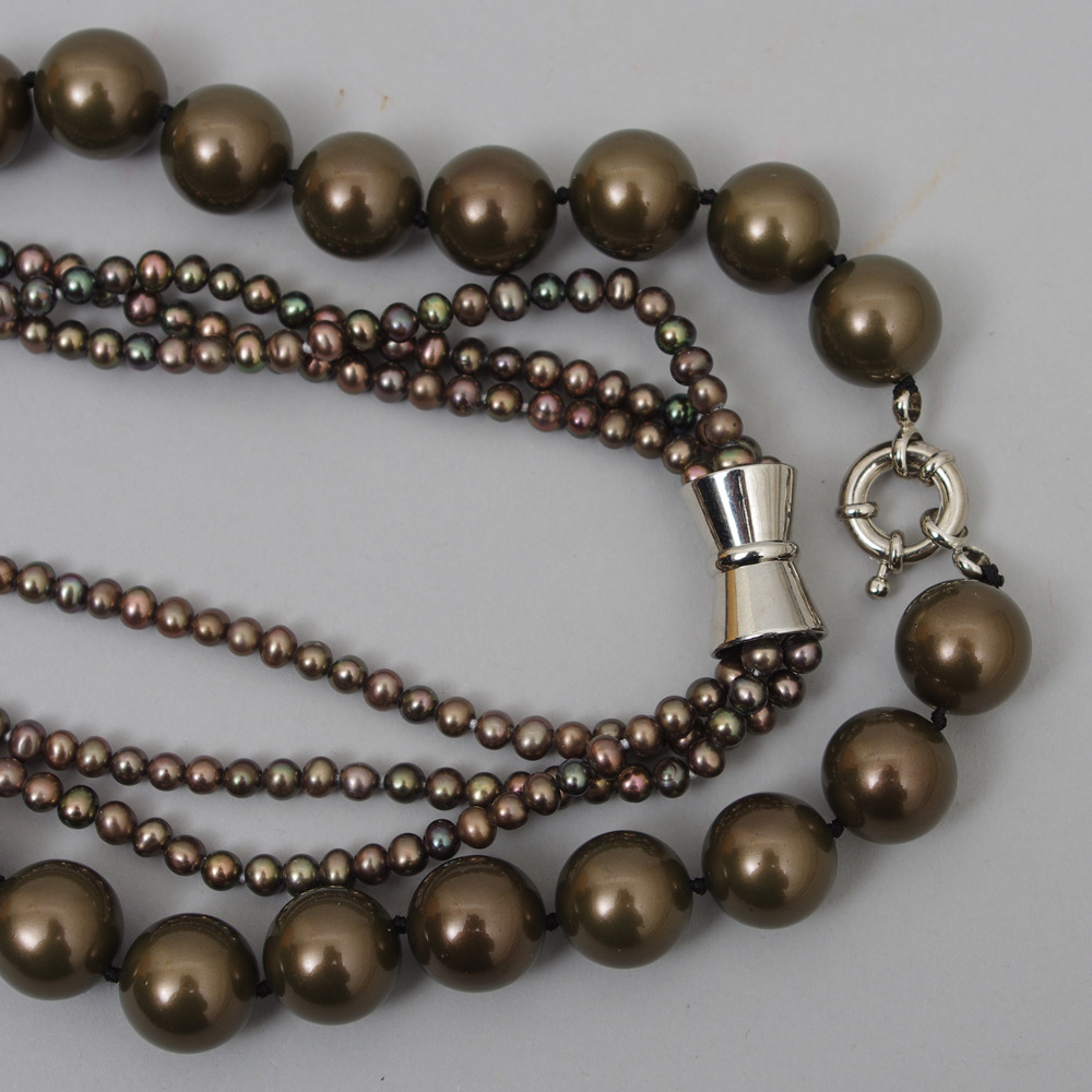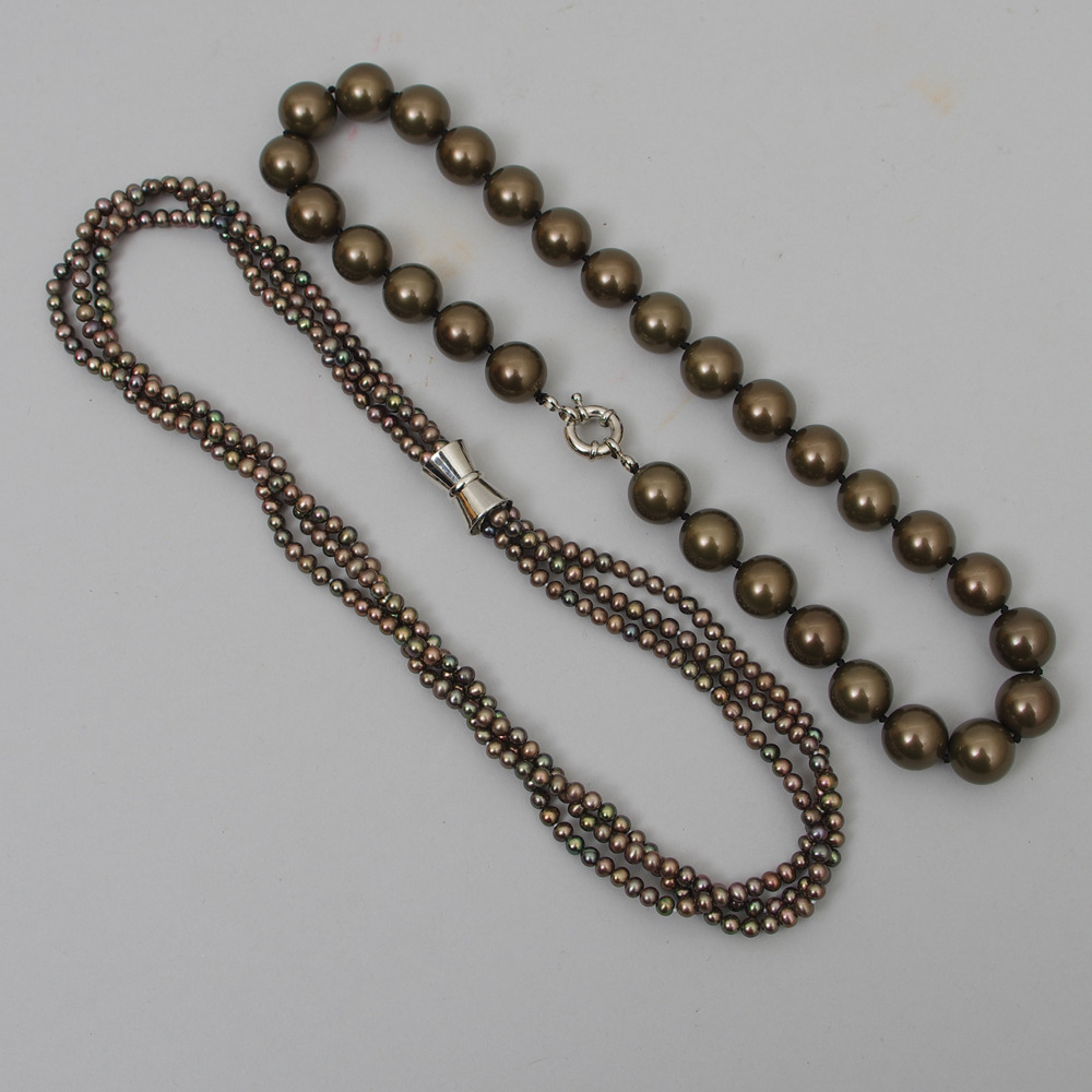 166412. HALSKETTE, 2 Stück, Perlen und Muschelperlen.