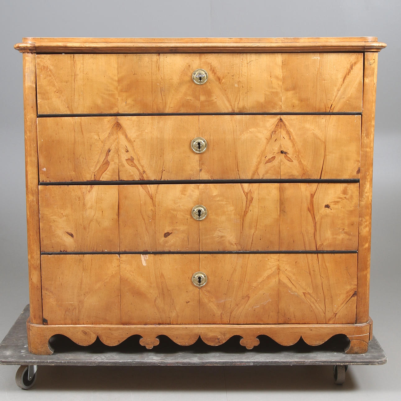 Mit vier Schubladen. Messingbeschläge, Länge 110, Breite 46, Höhe 95 cm.